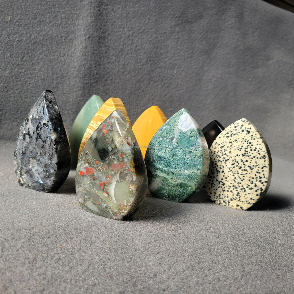 เปลวไฟขัดเงาอัญมณีธรรมชาติแกะสลักด้วยมือสำหรับตกแต่งรักษาความรักในการทำสมาธิฮวงจุ้ยเรกิแบบแฮนด์เมดจำนวนมากราคาโรงงาน
