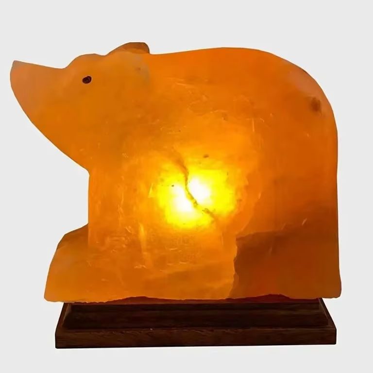 โคมไฟเกลือหิมาลัยรูปหมีแกะสลักด้วยมือจากวัสดุธรรมชาติ พร้อมดีไซน์สัตว์ตามสั่ง