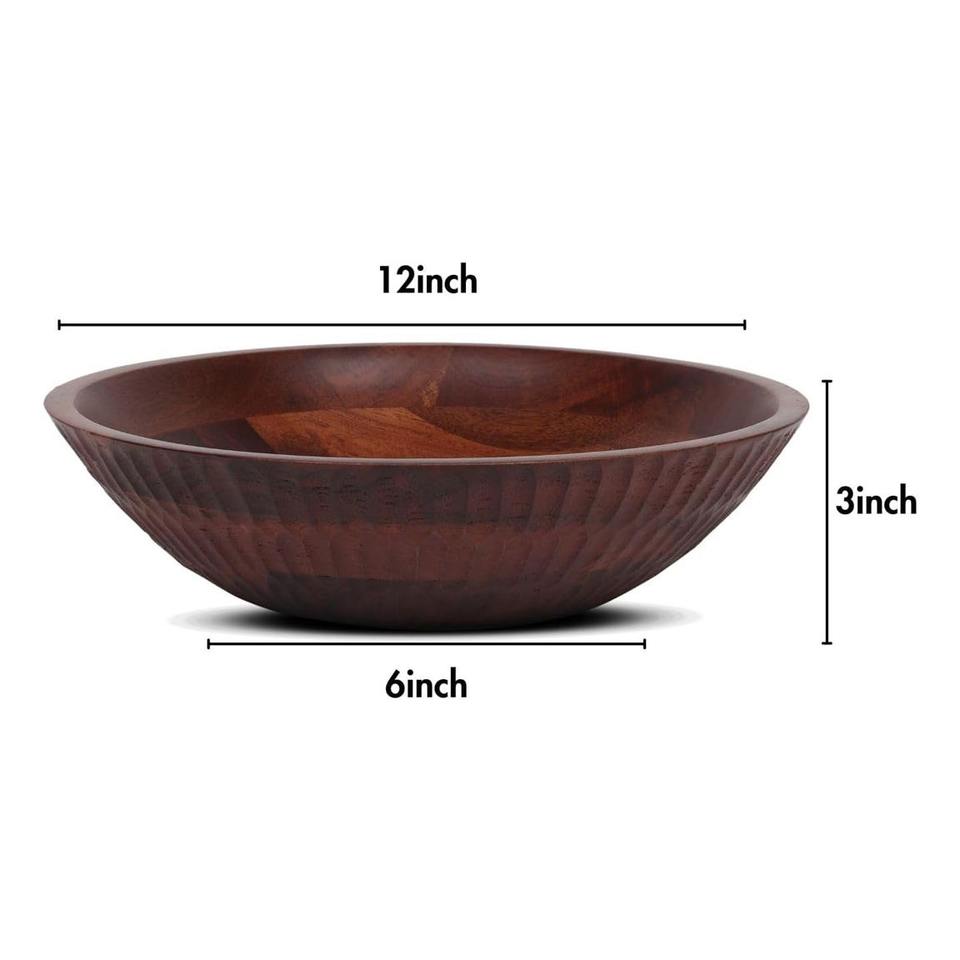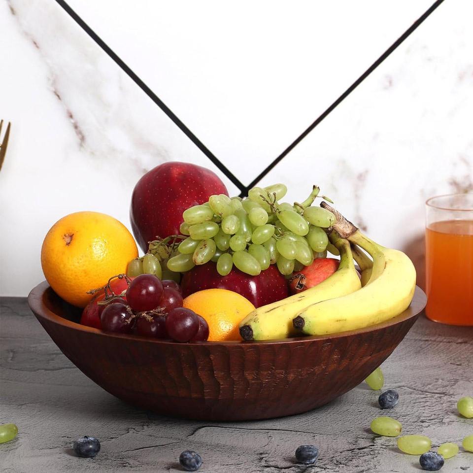 ชามไม้แกะสลักลายด้วยมือ ชามไม้มะม่วงสำหรับเสิร์ฟอาหาร สลัด พาสต้า ซีเรียล ข้าวโพดคั่ว ชามตกแต่งบนเคาน์เตอร์ครัว