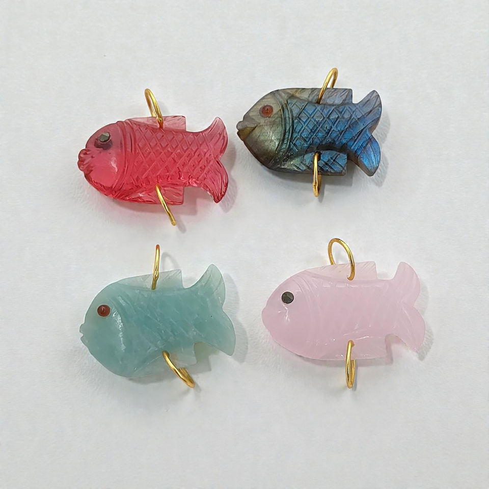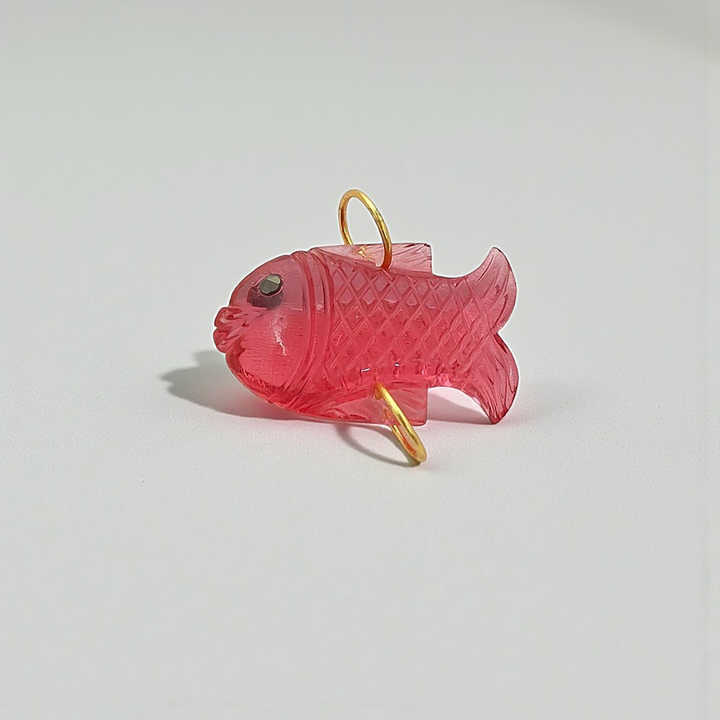 จี้ปลาแกะสลักด้วยมือจากพลอยทัวร์มาลีนสีชมพู ชุบทอง สไตล์ศาสนา พร้อมห่วงสำหรับทำเครื่องประดับหรือตกแต่ง
