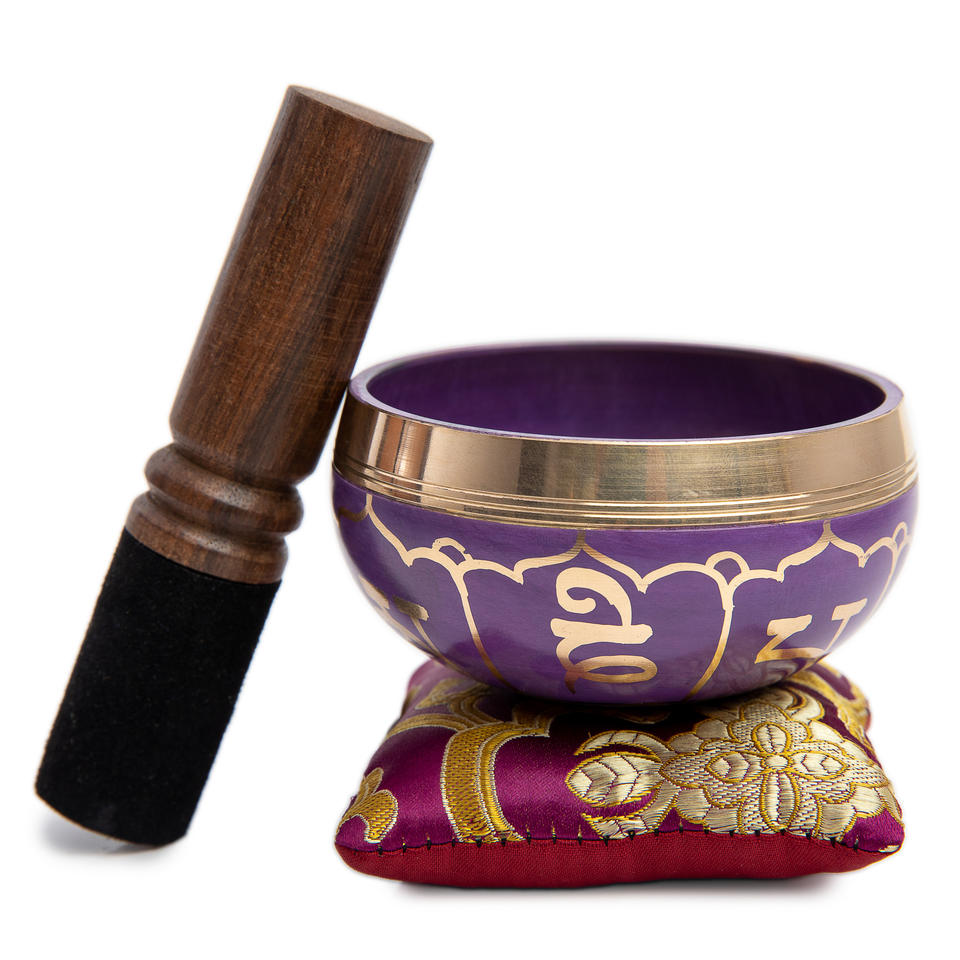 ชุดชามร้องเพลงสไตล์ธิเบตแกะสลักด้วยมือดีไซน์ทองเหลืองสีสันสดใสปรับแต่งได้สำหรับการทำสมาธิโยคะ