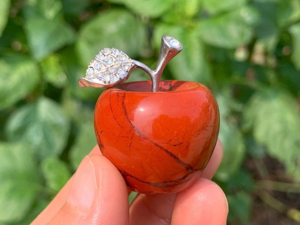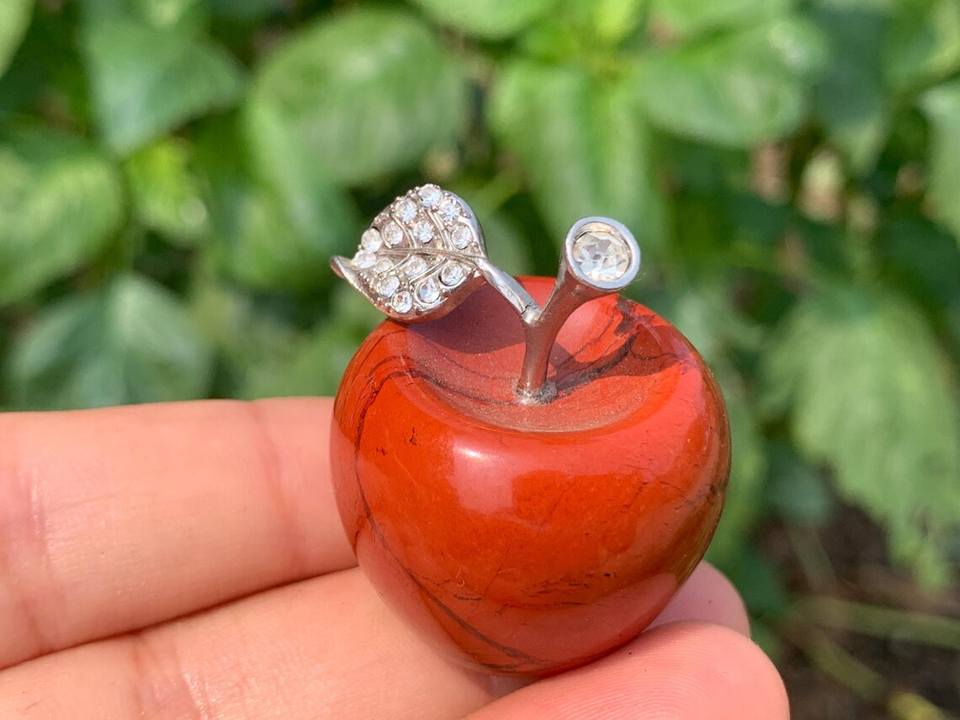 แอปเปิ้ลคริสตัลแกะสลักด้วยมือจากหินแจสเปอร์สีแดง หินบำบัดธรรมชาติ อัญมณีตกแต่งบ้าน ของขวัญเสริมฮวงจุ้ย ขนาด 1.3 นิ้ว