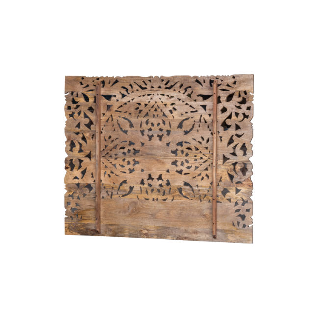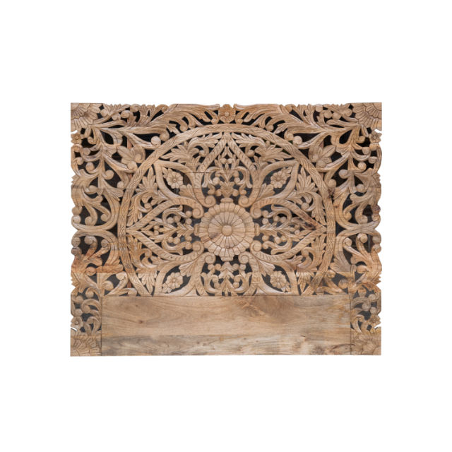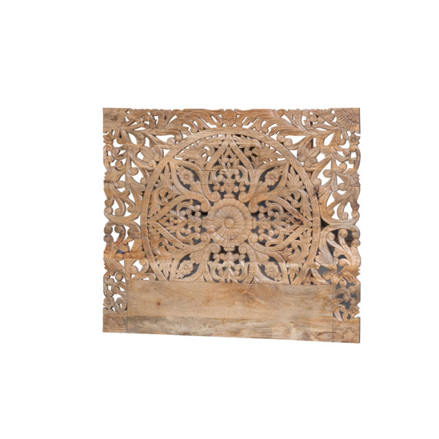 โครงเตียงไม้มะม่วงแกะสลักด้วยมือ ลายแมนดาลาแบบดั้งเดิม ปรับความสูงได้ ประหยัดพื้นที่ ขนาดคิงควีน สีธรรมชาติ