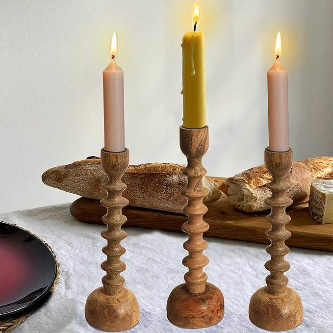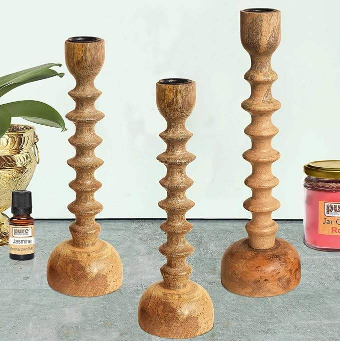 เชิงเทียนไม้แกะสลักด้วยมือ เป็นมิตรกับสิ่งแวดล้อม สไตล์วินเทจคลาสสิก ปรับแต่งได้ สำหรับชุดเชิงเทียนไม้ 3 ชิ้น ใช้ได้ทั้งภายในและภายนอกอาคาร