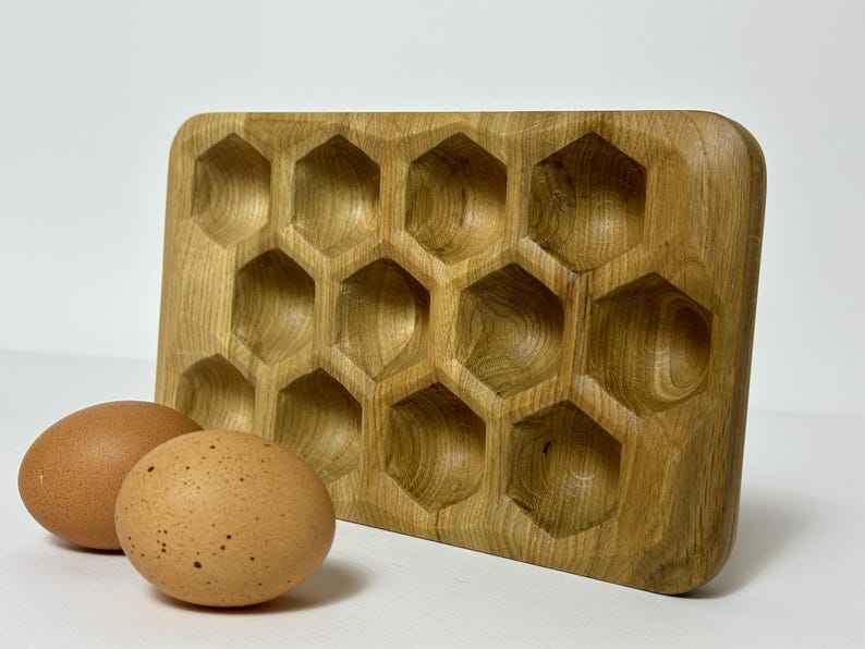 ถาดใส่ไข่ไม้แกะสลักด้วยมือสำหรับใส่ไข่ทำจากไม้ธรรมชาติแบบชนบทที่เก็บไข่ของขวัญจากไม้ที่เป็นเอกลักษณ์