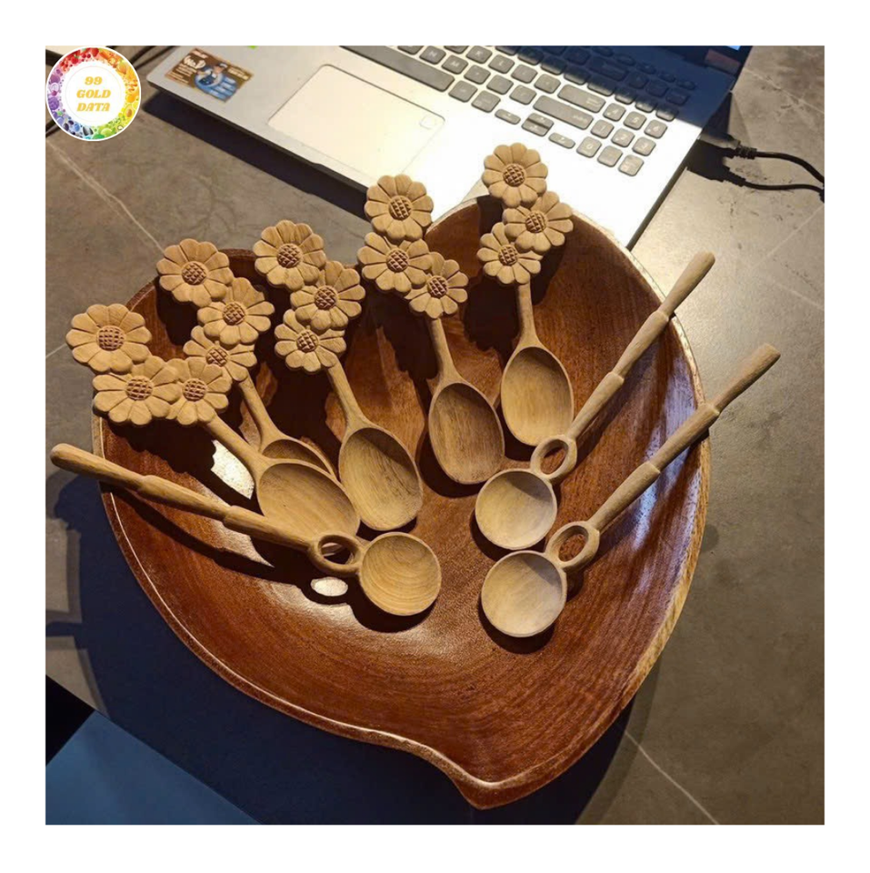 ช้อนไม้แกะสลักด้วยมือสำหรับทำอาหารประจำวันหรูหราเครื่องครัวไม้แบบพรีเมี่ยมขายส่ง