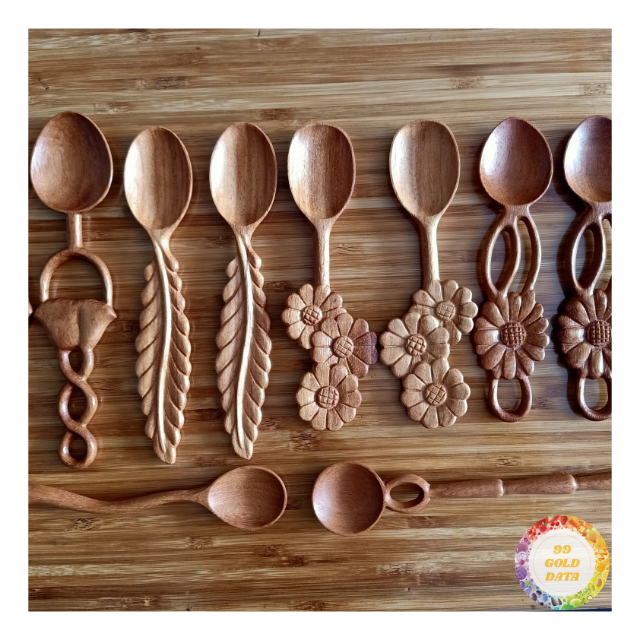 ช้อนไม้แกะสลักด้วยมือ มีสามแบบให้เลือก ช้อนไม้ด้ามรูปใบไม้ ทำด้วยมือ สำหรับโอกาสพิเศษ - CARYLN