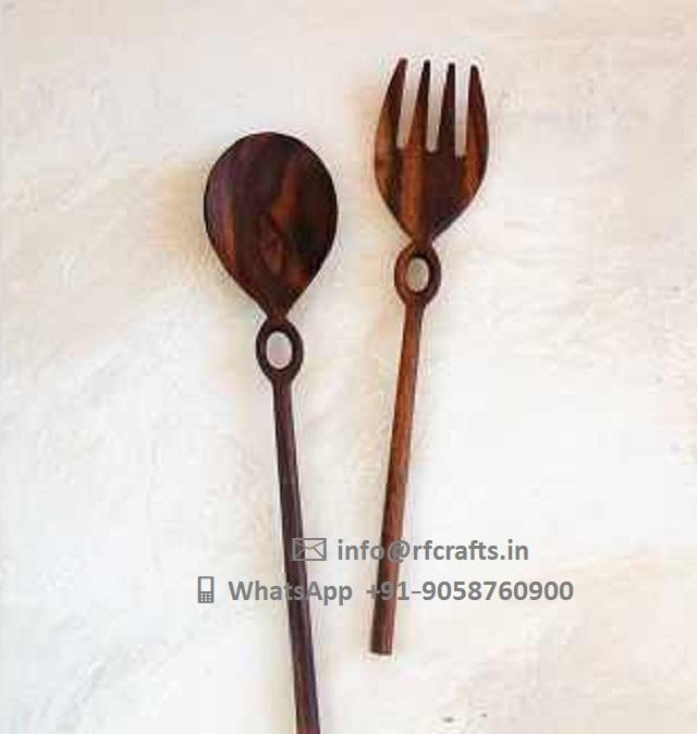 ช้อนไม้อะคาเซียมือแกะสลักสำหรับเสิร์ฟอาหารที่โต๊ะในครัวของขวัญทางธุรกิจจากงานฝีมือ RF