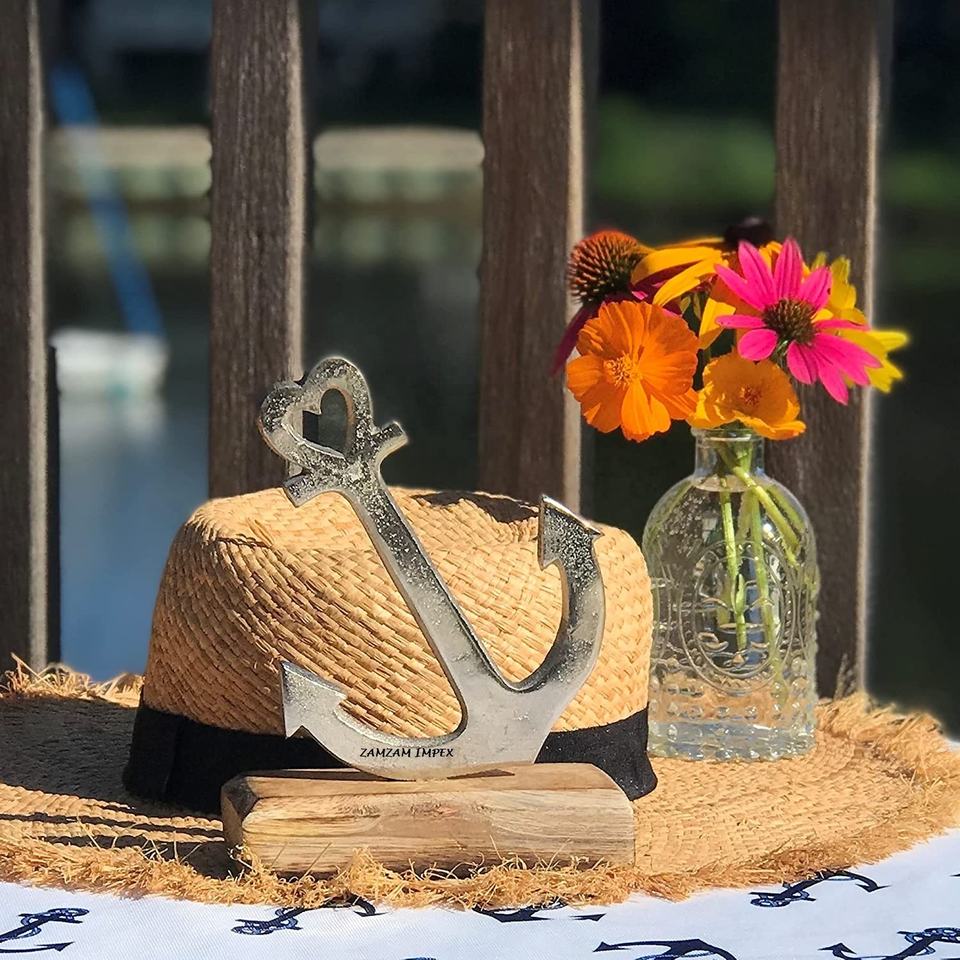 รูปปั้นสมอเรืออลูมิเนียมหล่อด้วยมือแข็งสำหรับฐานไม้มะม่วงรูปปั้นสมอทะเลแบบทันสมัยสำหรับตกแต่งโต๊ะในบ้านสำนักงาน