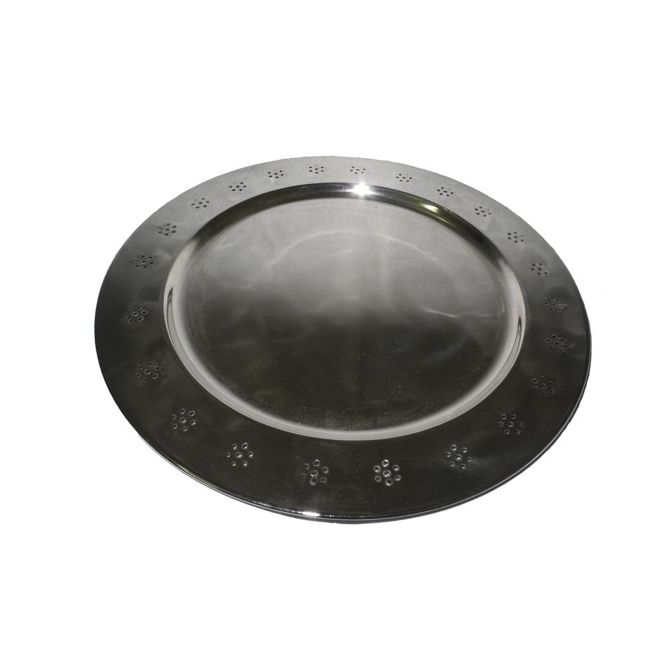 จานโลหะจานที่ชาร์จสำหรับเครื่องครัวจานโลหะสีดำพิมพ์ลายด้วยมือจานที่ชาร์จแบบโค้งสีดำสำหรับงานหัตถกรรม