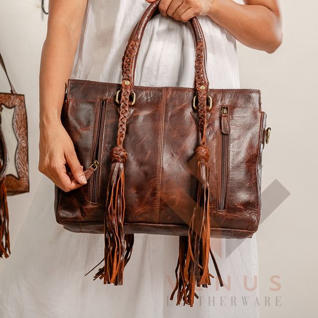 กระเป๋าหนังวัวสะพายข้างทำมือสำหรับผู้หญิงสีเขียวสวยพร้อมซิปแบบปิดสลักลายวงกลม