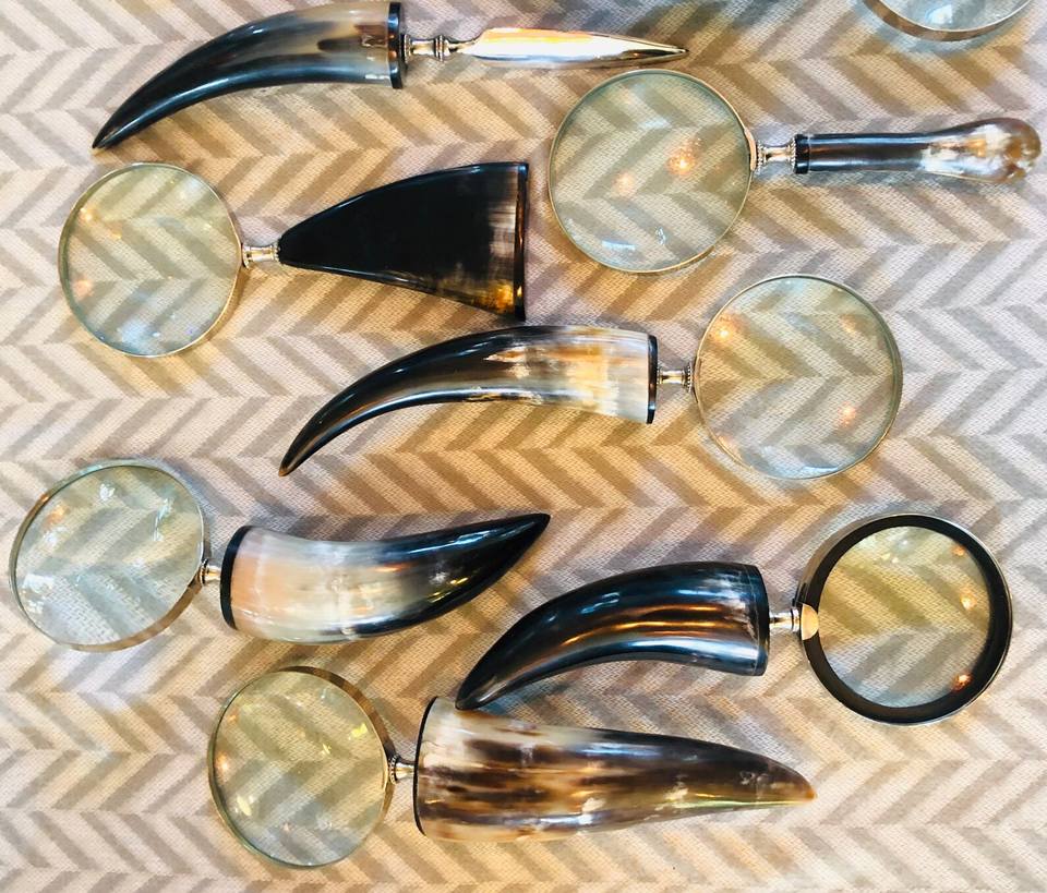 แว่นขยายรูปทรงแท่งทำด้วยมือเขาแก้วแกะสลักสไตล์การเดินเรือชุบนิกเกิลด้ามจับดีไซน์รูปสัตว์สินค้าหัตถกรรมจากธรรมชาติ