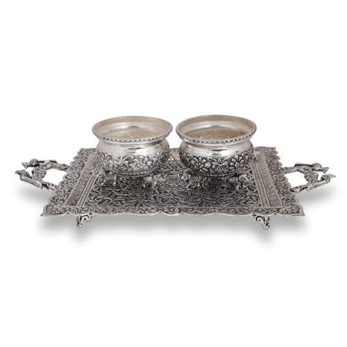 ถาดชุบเงินงานฝีมือพร้อมชามวินเทจ,ถ้วยช้างทองแดงพร้อมของตกแต่งบ้านคืนงานแต่งงาน
