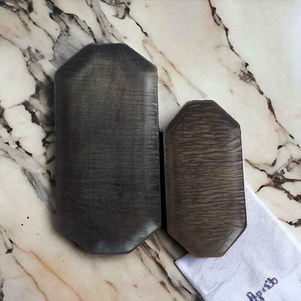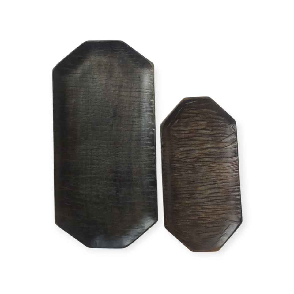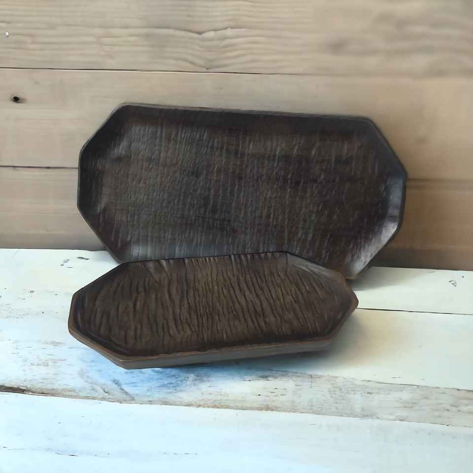 ถาดเสิร์ฟไม้มะม่วงดีไซน์วินเทจที่ทำด้วยมือสีดำน้ำตาลในบ้านของตกแต่งคริสต์มาสสำหรับจานอาหาร