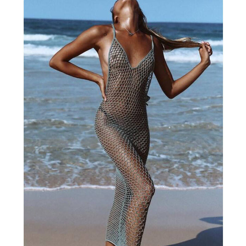 กระโปรงรัดรูปตาข่ายวันพีซสีดำของผู้หญิง MISS Micro's พร้อมกระเป๋ารัดก้น