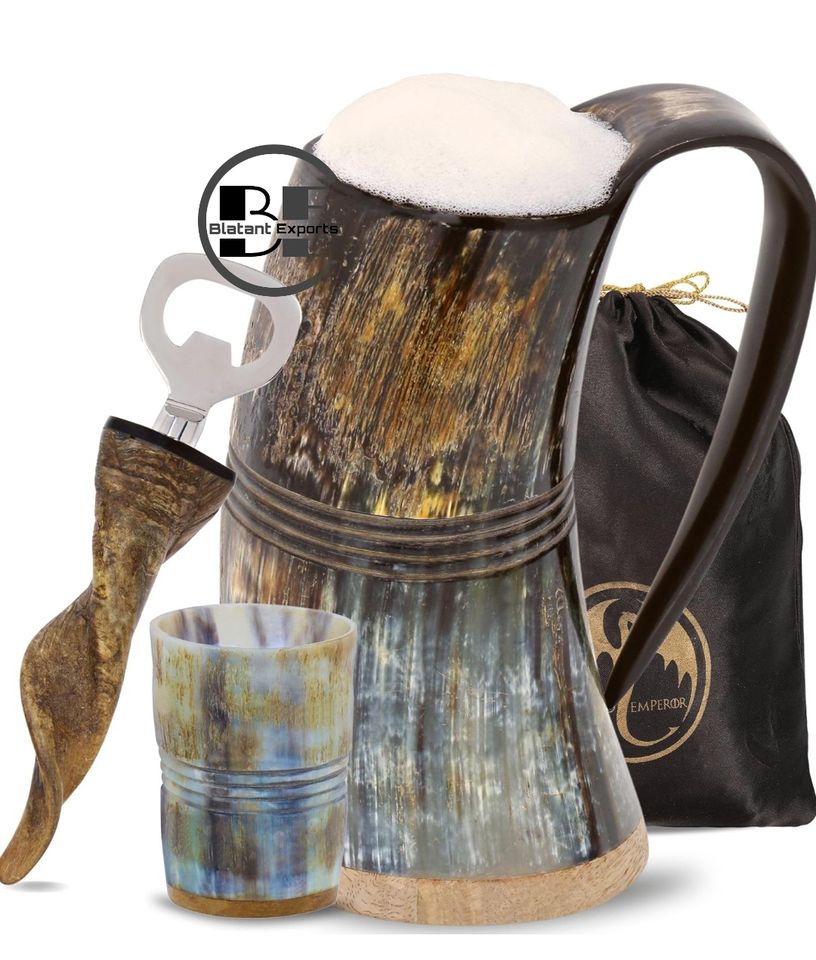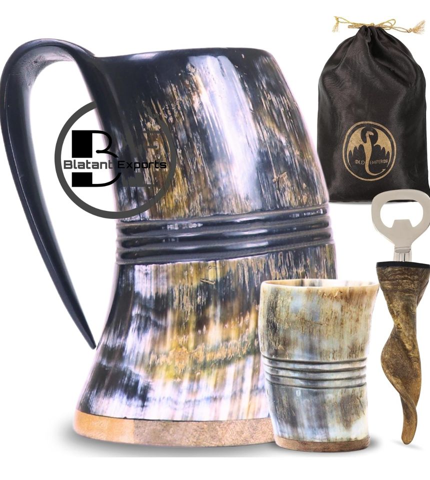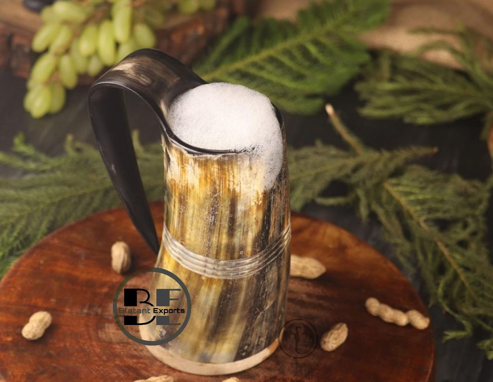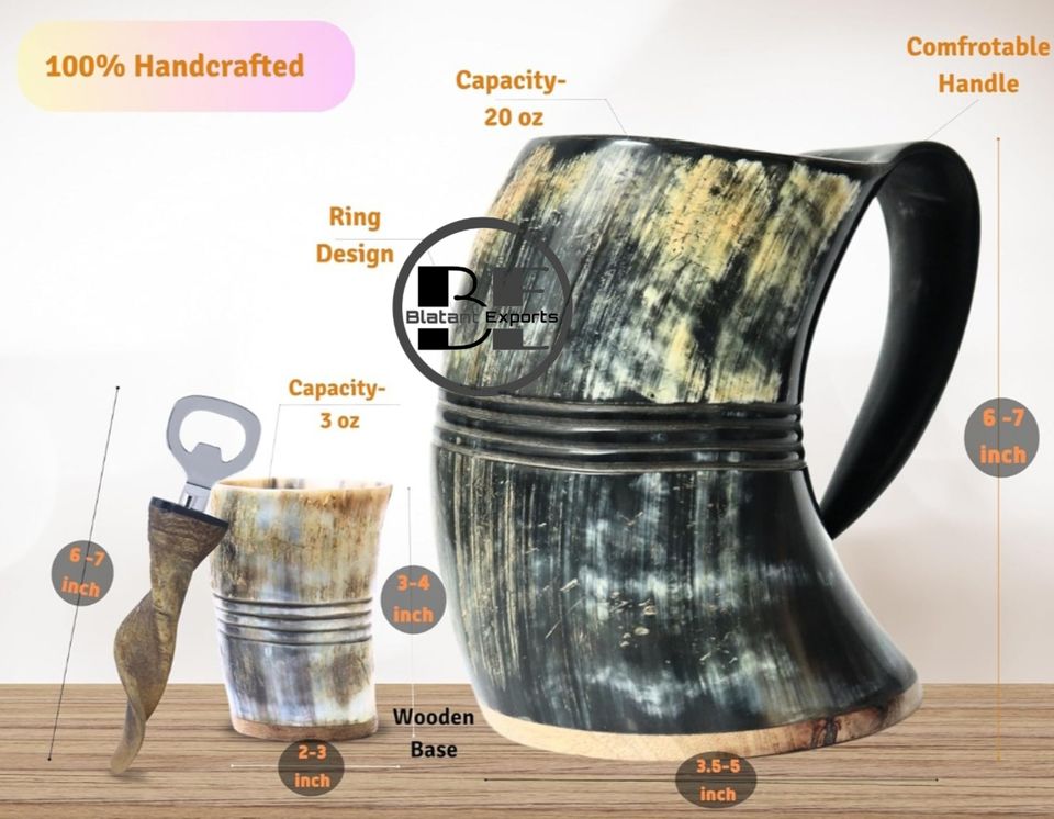 แก้วมักไวกิ้งฮอร์นแบบดั้งเดิมของแท้ถ้วยดื่มมิ้ดขัดเงาสำหรับเทศกาลยุคกลางและงานแสดงสินค้าเกี่ยวกับยุคฟื้นฟูศิลปวิทยาผู้ผลิตอินเดีย