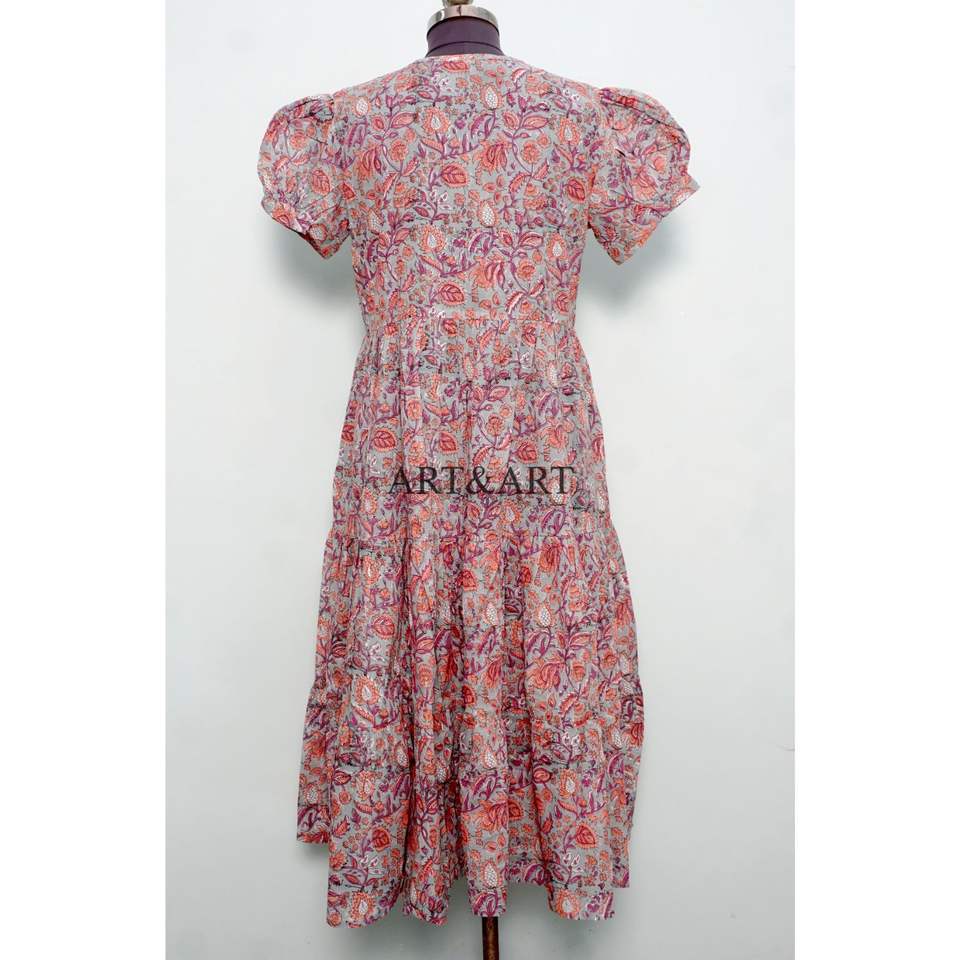 Hand Digital Printed Floral Sexy Dress Knitted Cotton V-neck Short Sleeve Midi A-line Eco-Friendly Breathable Sweet Natural