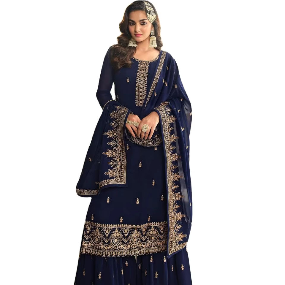 ชุดซอลวาร์ผ้า Georgette แบบเย็บกึ่งพิเศษพิมพ์ลายด้วยมือ2025
