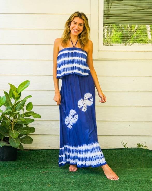 ชุดเดรสแม็กซี่มือย้อมสีชุดเดรสโบฮีเมียนย้อมสีสำหรับฤดูร้อน