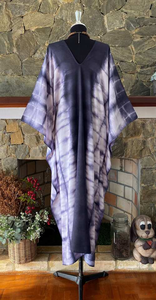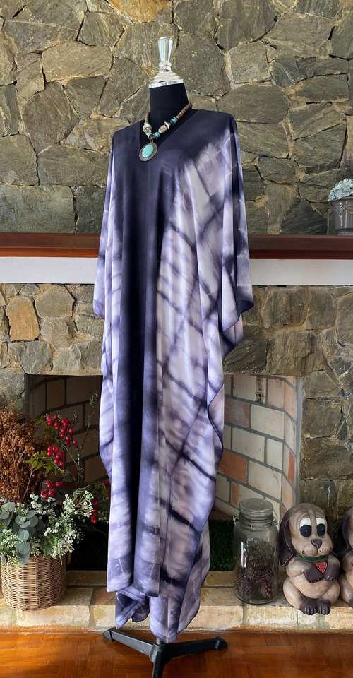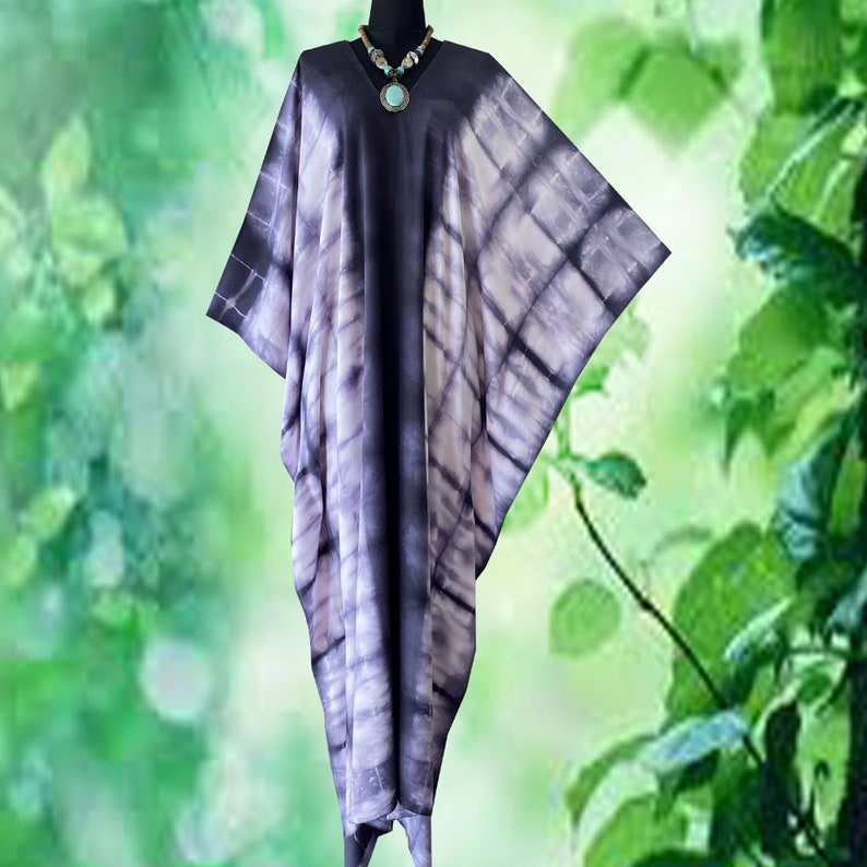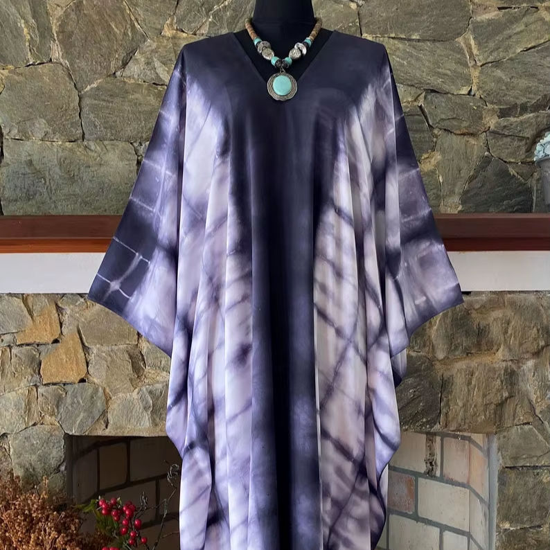 ชุดเดรสคาฟทันผ้าเรยอนย้อมสีแบบชิโบริ ไซส์พลัส งานศิลปะที่สวมใส่ได้ สไตล์โบฮีเมียน ชุดเดรสยาวสำหรับผู้หญิง