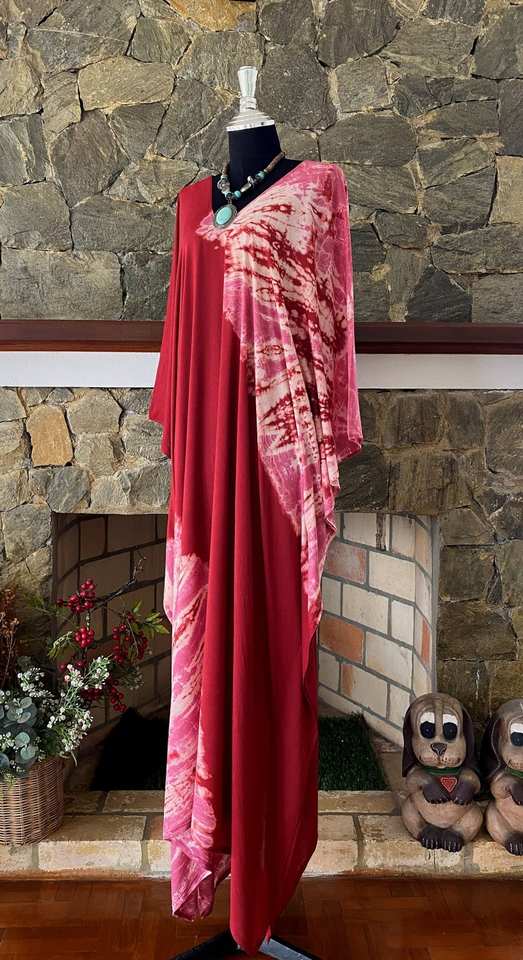 ชุดเดรสคาฟตันผ้าเรยอนย้อมสีไวน์แดงแบบ Shibori ทรงหลวม ไซส์พลัส