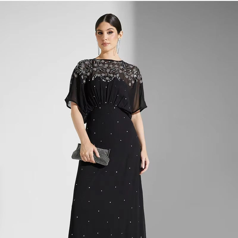 Hand-Embellished Sequin Bead Detailing Flowy Tulle Maxi Length Breathable Evening Party Dress A-Line Weddings Proms Special