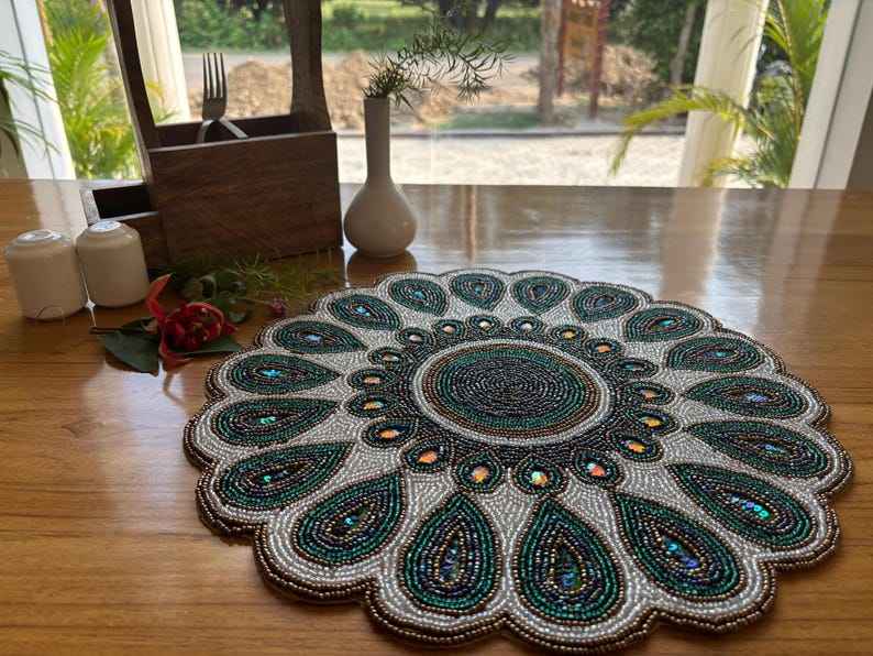 ที่รองจานลูกปัดปักด้วยมือหรูหราขนาด Decor15นิ้ว