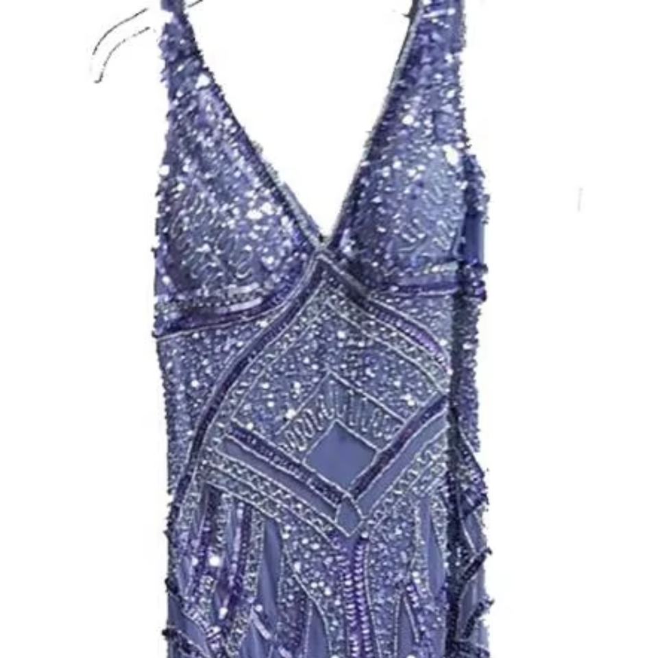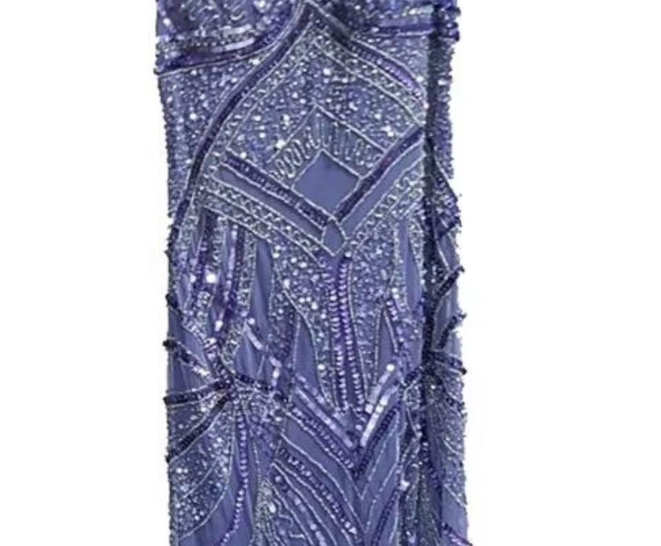 ชุดเดรสทรงตรงยาวกรอมพื้น ปักมือด้วยลูกปัดและเลื่อม ไม่มีแขน