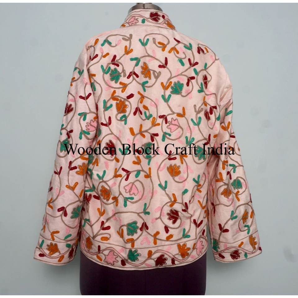 เสื้อแจ็คเก็ตผ้ากำมะหยี่ปักลายดอกไม้สไตล์โบฮีเมียน พร้อมซับในขนสัตว์ งานปักมือ เสื้อโค้ทสั้นพิมพ์ลาย เสื้อแจ็คเก็ตซูซานีทำมือสำหรับผู้หญิง