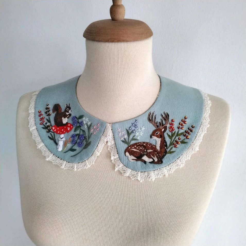 ปกคอปักมือ, ปกที่ถอดออกได้กับ Robin Bird, ปกผ้าลินินวินเทจ, ปกแฮนด์เมด, อุปกรณ์เสริมสวมใส่โบฮีเมียน