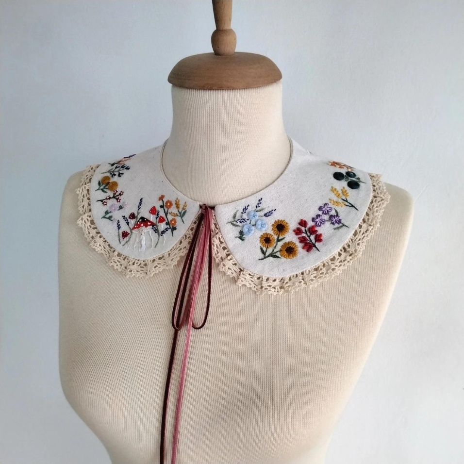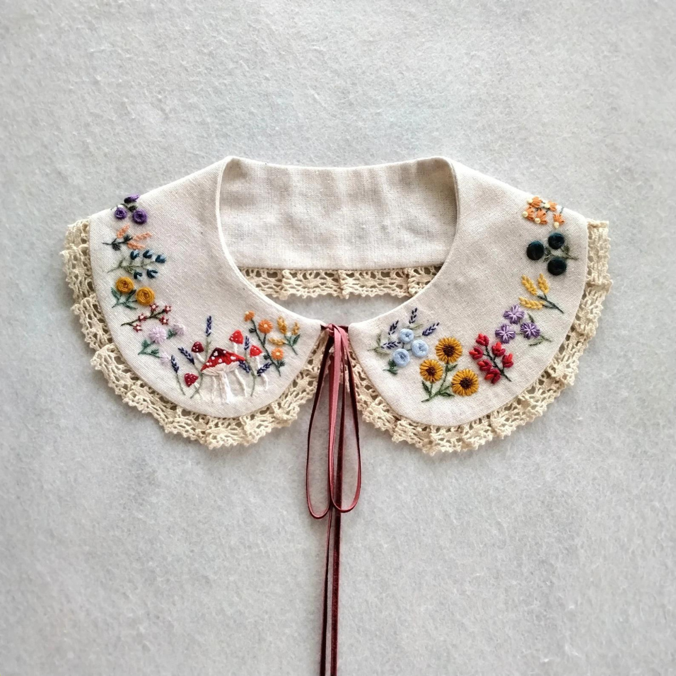 ปกคอปักมือ, ปกที่ถอดออกได้กับ Robin Bird, ปกผ้าลินินวินเทจ, ปกแฮนด์เมด, อุปกรณ์เสริมสวมใส่โบฮีเมียน