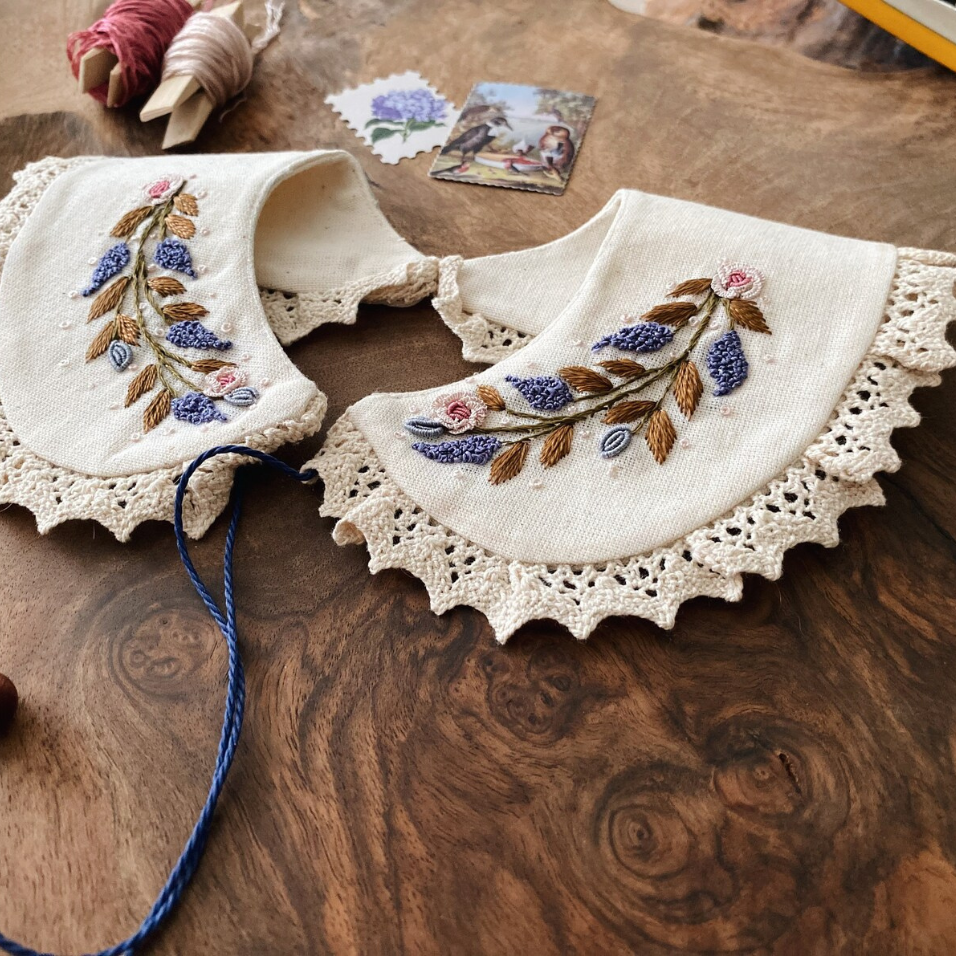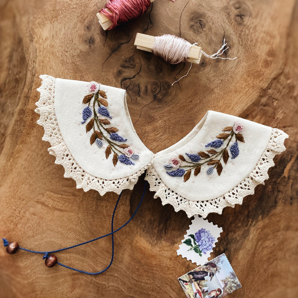 ปกคอปักมือ, ปกที่ถอดออกได้กับ Robin Bird, ปกผ้าลินินวินเทจ, ปกแฮนด์เมด, อุปกรณ์เสริมสวมใส่โบฮีเมียน