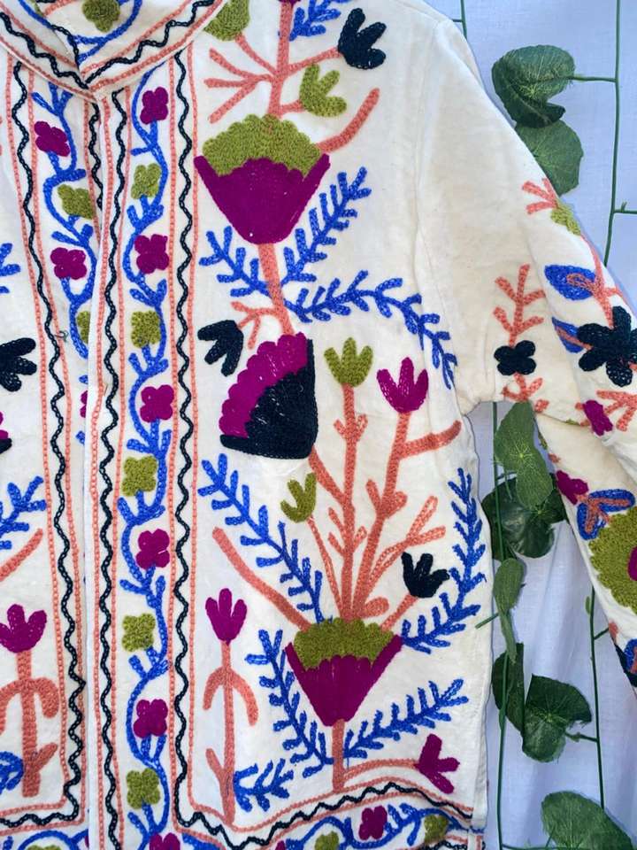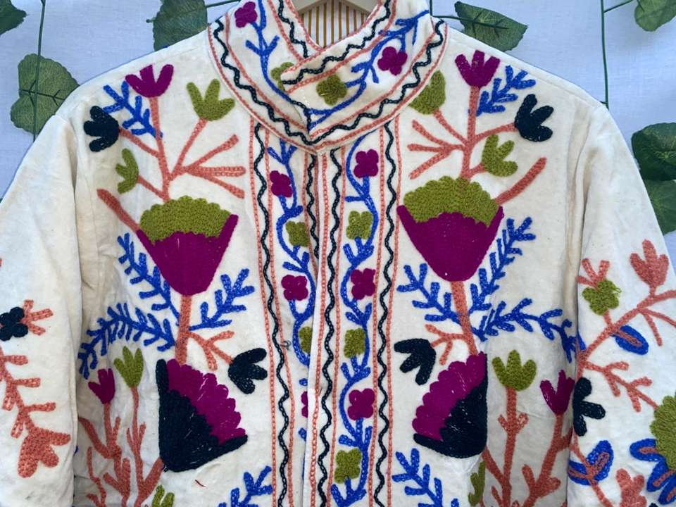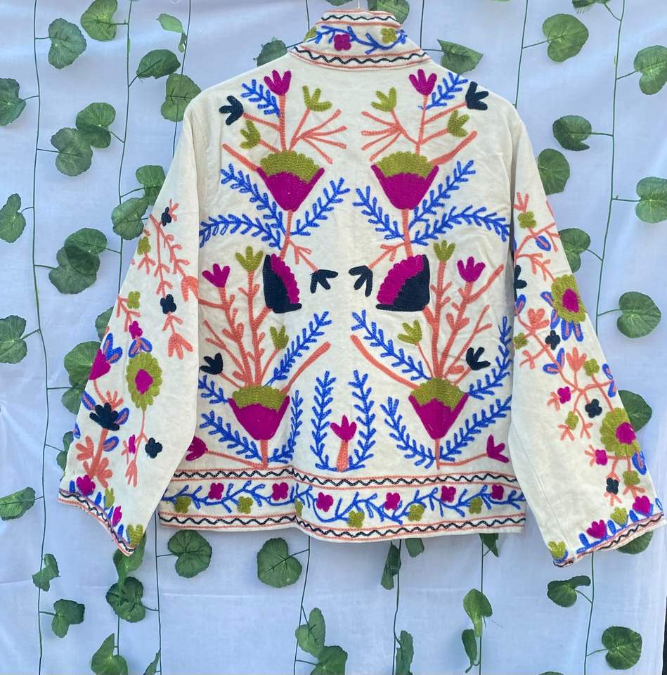 เสื้อแจ็คเก็ตปักลายดอกไม้ด้วยมือ – เสื้อแจ็คเก็ตกำมะหยี่สไตล์โบโฮสำหรับผู้หญิง – เสื้อโค้ทปักลายหลากสีสันแบบงานฝีมือ เสื้อคลุมบูติก