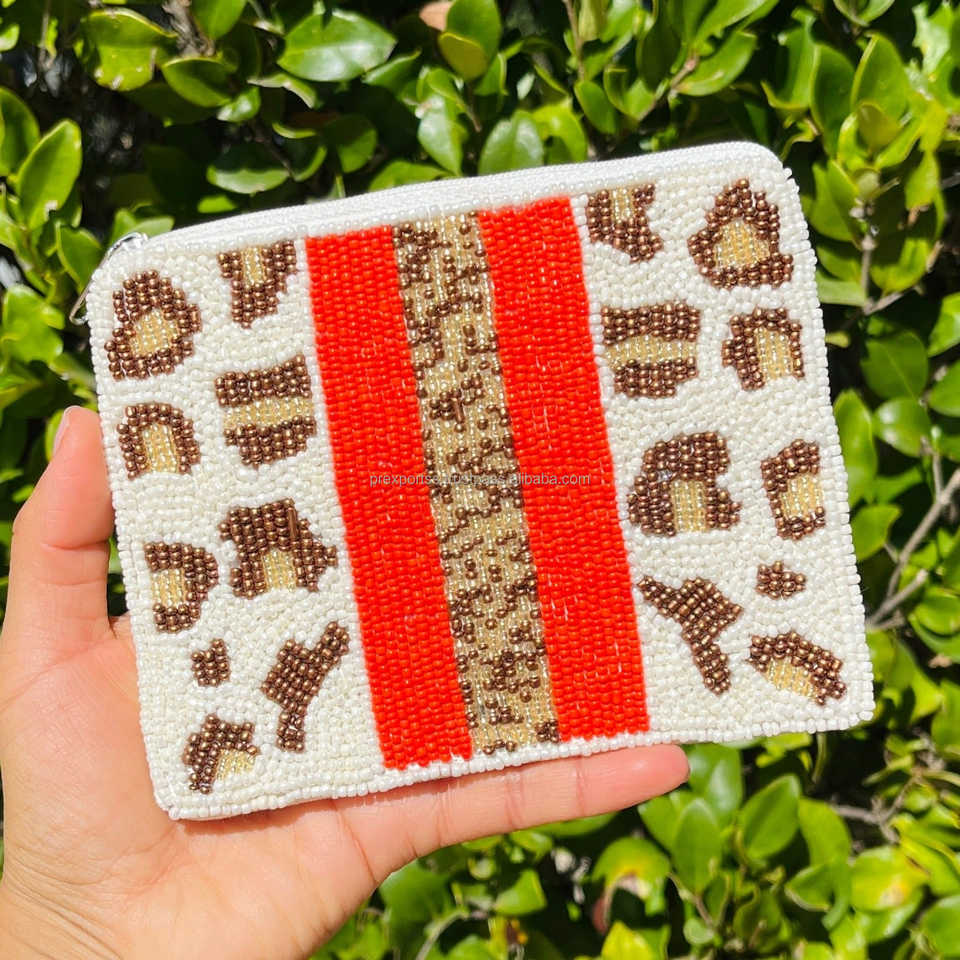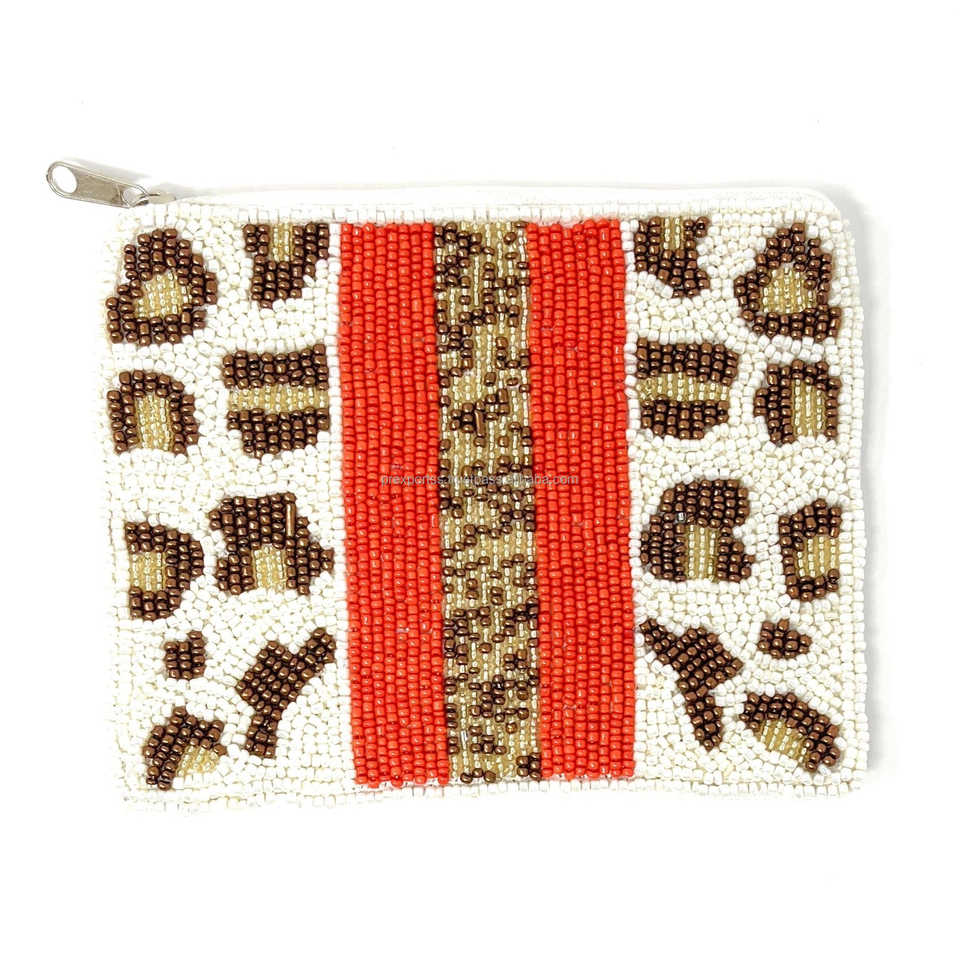 กระเป๋าคลัทช์ใบเล็กปักลายเสือดาวพร้อมซิปปิด แต่งแถบสีแดง สำหรับผู้หญิง ใช้สำหรับงานปาร์ตี้ ท่องเที่ยว หรือเป็นของขวัญ
