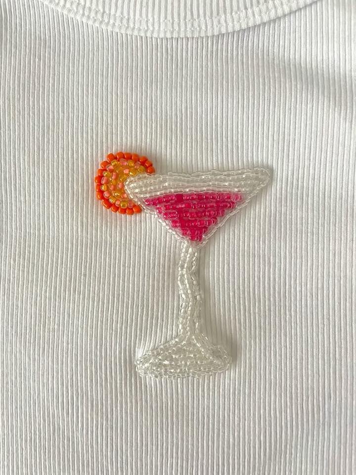 แพทช์ปักมือสำหรับผู้หญิง เสื้อกล้ามสีชมพู เสื้อครอปสำหรับฤดูร้อน ลดราคา ตกแต่งด้วยลายดอกไม้ ลูกปัดแก้ว เลื่อม ประดับด้วยลายสัตว์ทะเล