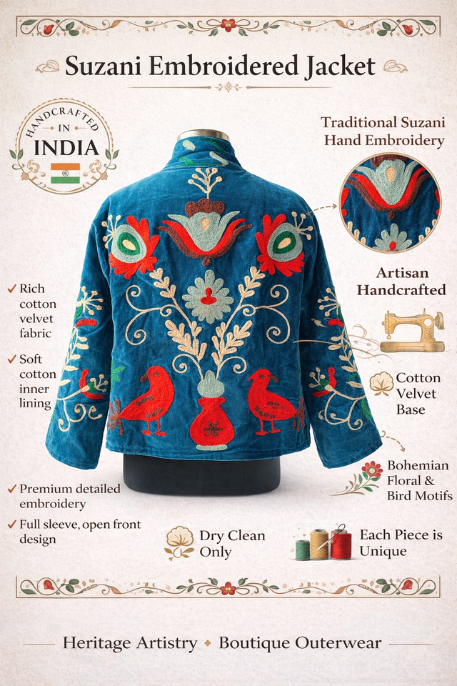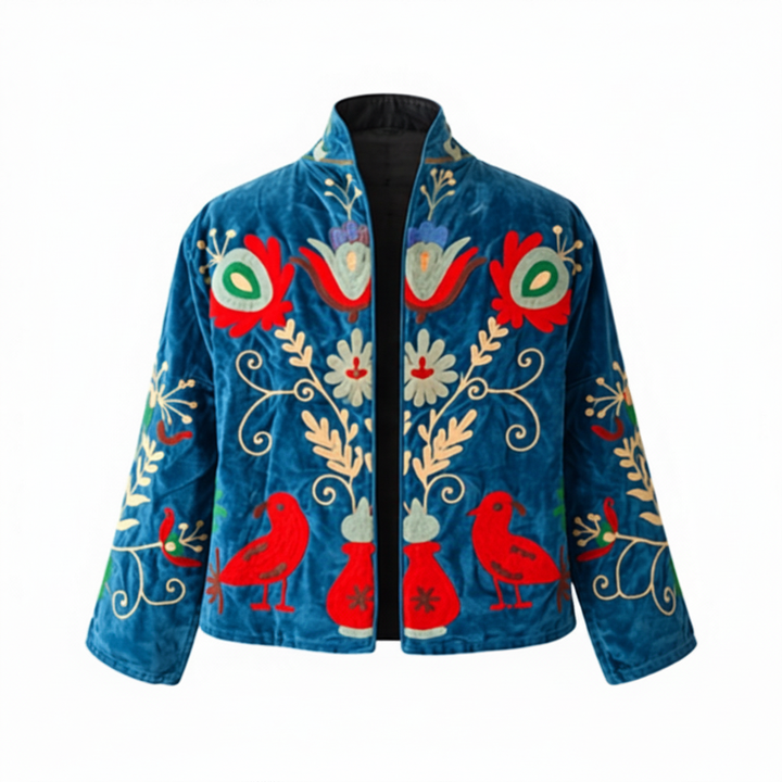 เสื้อแจ็คเก็ตซูซานีปักมือสไตล์วินเทจ ระบายอากาศได้ดี งานถักลายดอกไม้สไตล์โบฮีเมียน สำหรับแบรนด์แฟชั่นบูติก