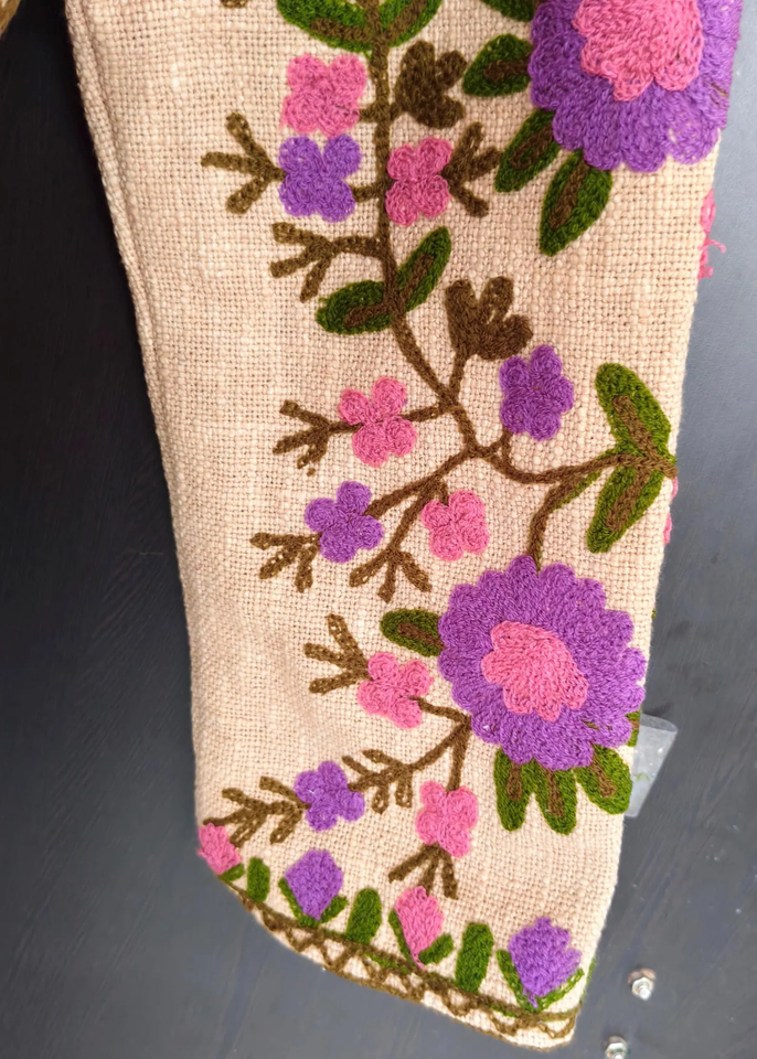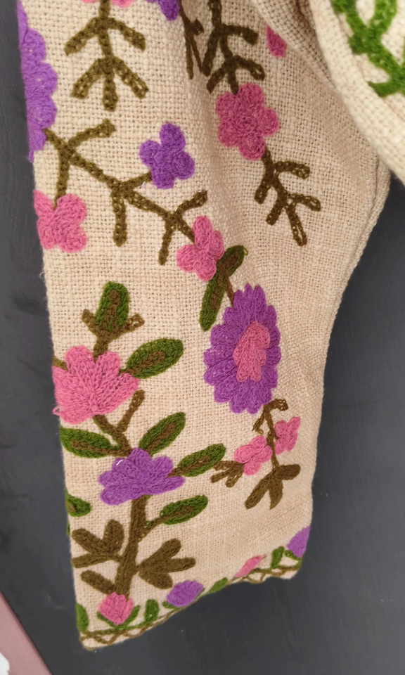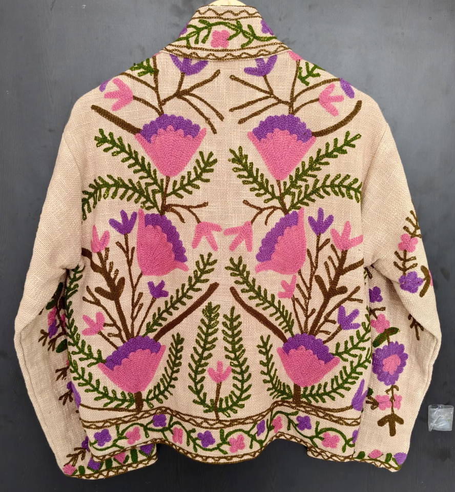 เสื้อแจ็คเก็ตปักมือสไตล์วินเทจลายดอกไม้ งานฝีมือสุดประณีต สีชมพูม่วง ผ้าฝ้ายซูซานี ระบายอากาศได้ดี