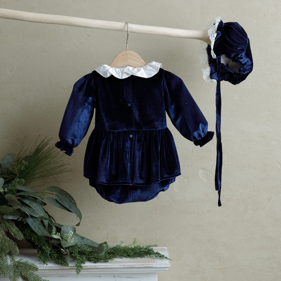 ชุดจั๊มสูทผ้ากำมะหยี่ปักด้วยมือสำหรับเด็กผู้หญิงแรกเกิดแรกเกิดแรกเกิดชุดหมีบอดี้สูทพร้อมหมวกสตรี-Mia