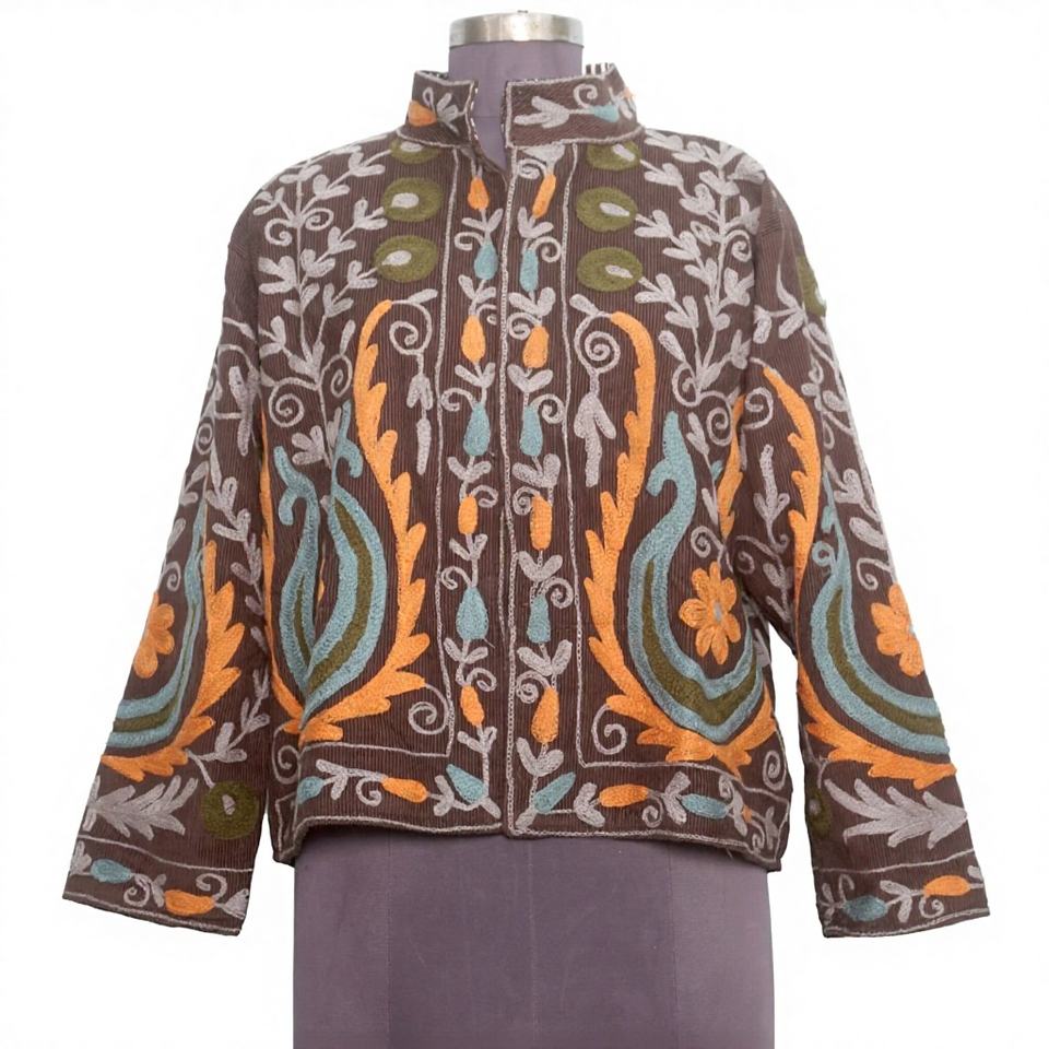 เสื้อแจ็คเก็ตบอมเบอร์คอร์ติสแบบเย็บมือ ระบายอากาศได้ดี เป็นมิตรกับสิ่งแวดล้อม ลายดอกไม้ สไตล์ชนเผ่าโบราณ เสื้อคลุมสำหรับฤดูใบไม้ร่วง 100%