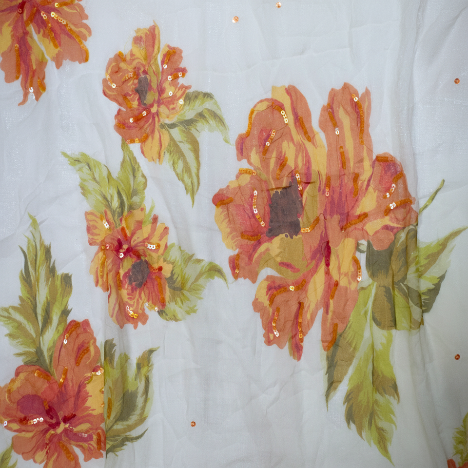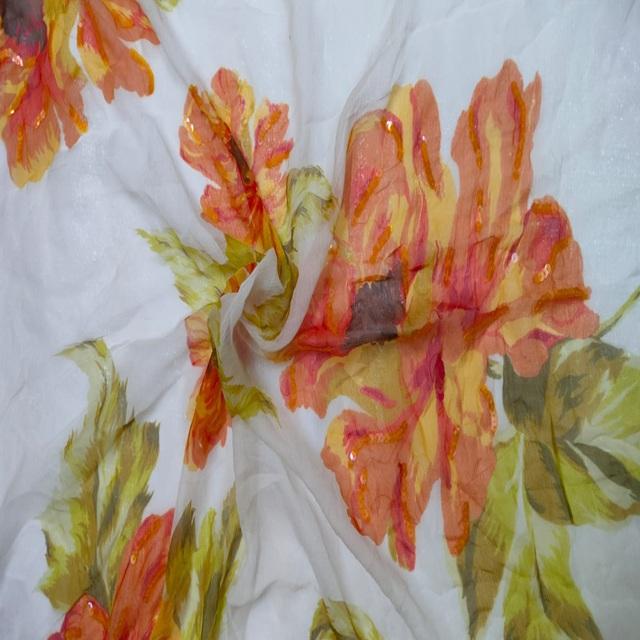 ปักมือด้วยภาพพิมพ์บนผ้าไหมชีฟอง