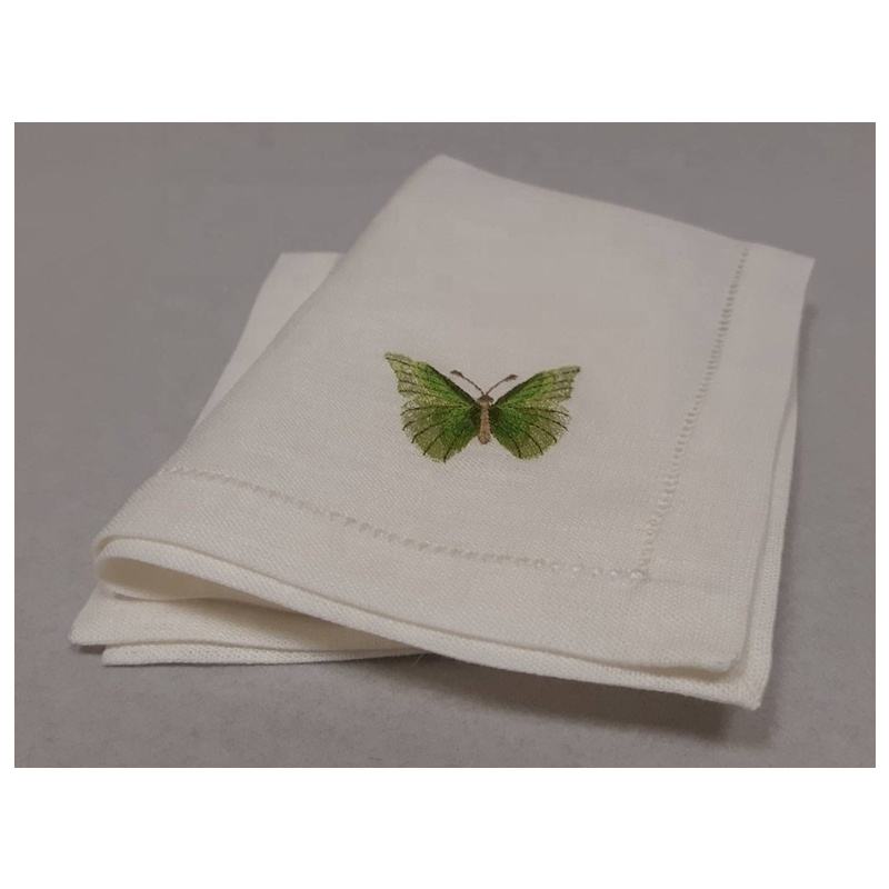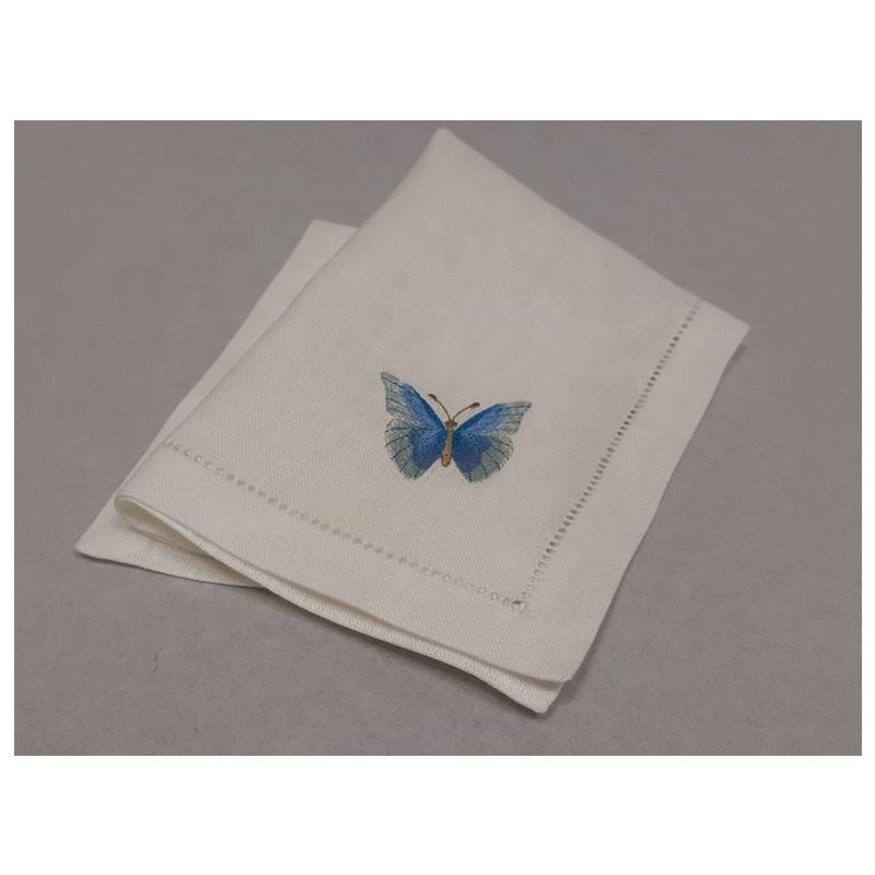 ทิชชู่ปักลายผีเสื้อ,ผ้าเช็ดปาก Hemstitch ผ้าฝ้าย100% แบบใช้แล้วทิ้ง Quangthanh ปักด้วยมือ45X4ซม. ยุโรป QTNK21