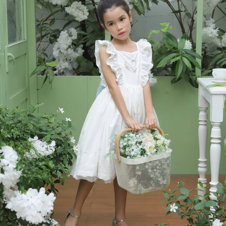 เดรสเด็กผู้หญิงแขนกุดสีขาวงานปักลายดอกไม้2023