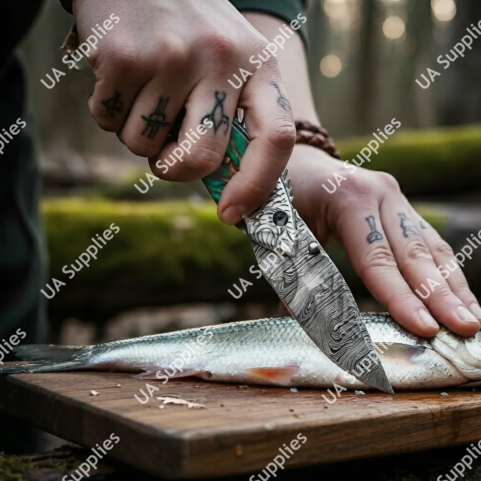 มีดพับอเนกประสงค์เหล็กดามัสกัสคุณภาพสูง สลักลายด้วยมือ ใบมีด 7.5 นิ้ว เหมาะสำหรับตั้งแคมป์ พกพา ใช้ในชีวิตประจำวัน งาน DIY ขั้นต่ำในการสั่งซื้อน้อย