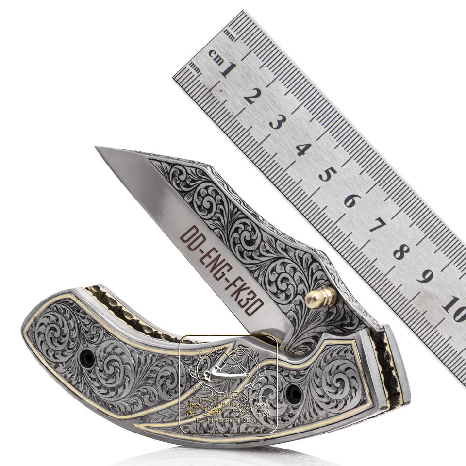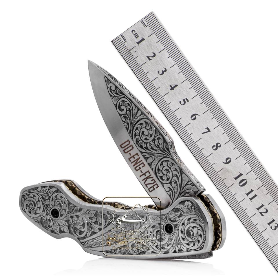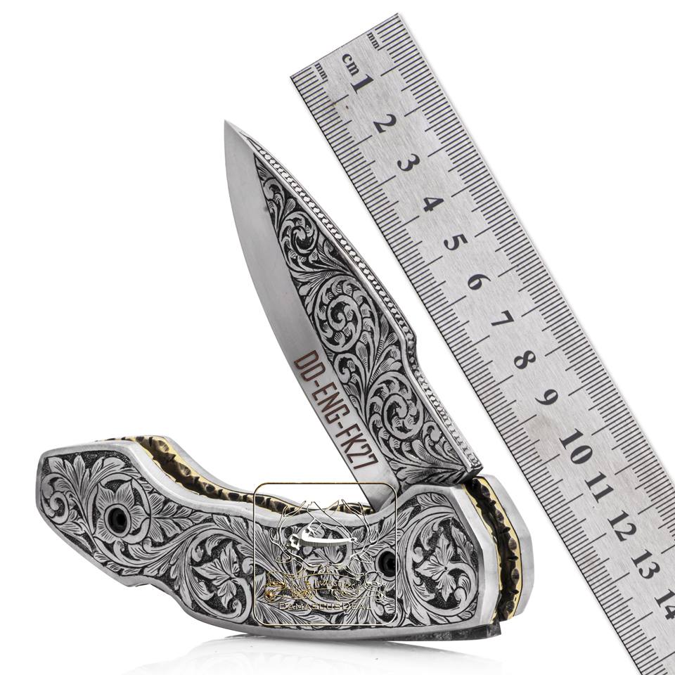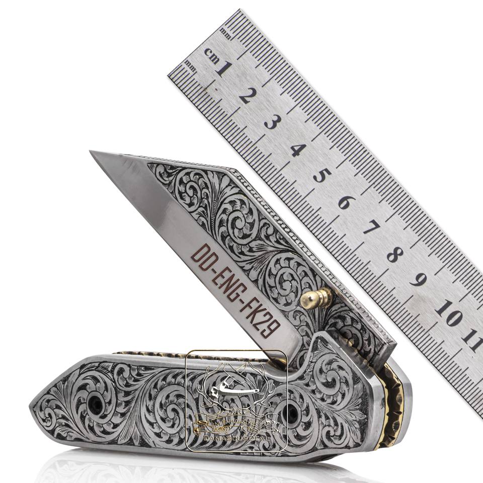 มีดพับพกพาแกะสลักด้วยมือ DD-ENG-FK26 ใบมีดสแตนเลสพร้อมลายดอกไม้แกะสลักพร้อมตัวเลือกการปรับแต่ง