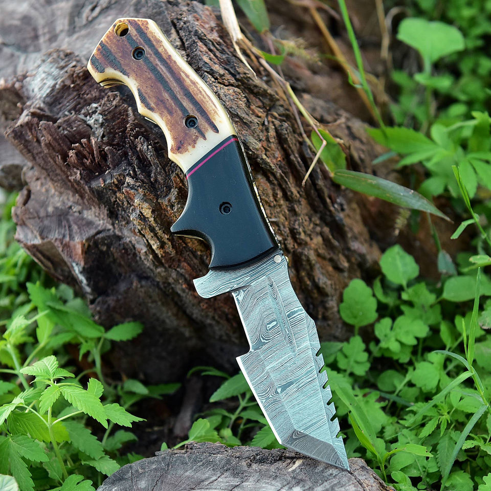 ชุดมีดพับเหล็กดามัสกัสโบราณตีขึ้นรูปด้วยมือ มีดครัวเหล็กดามัสกัส มีดพับแบบ Trucker