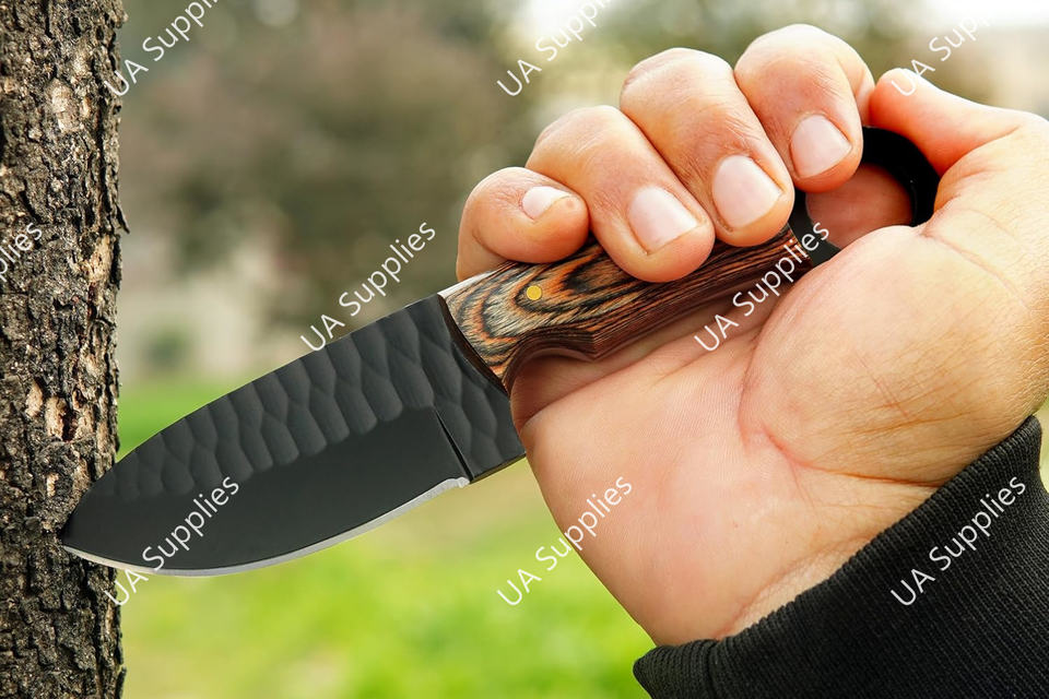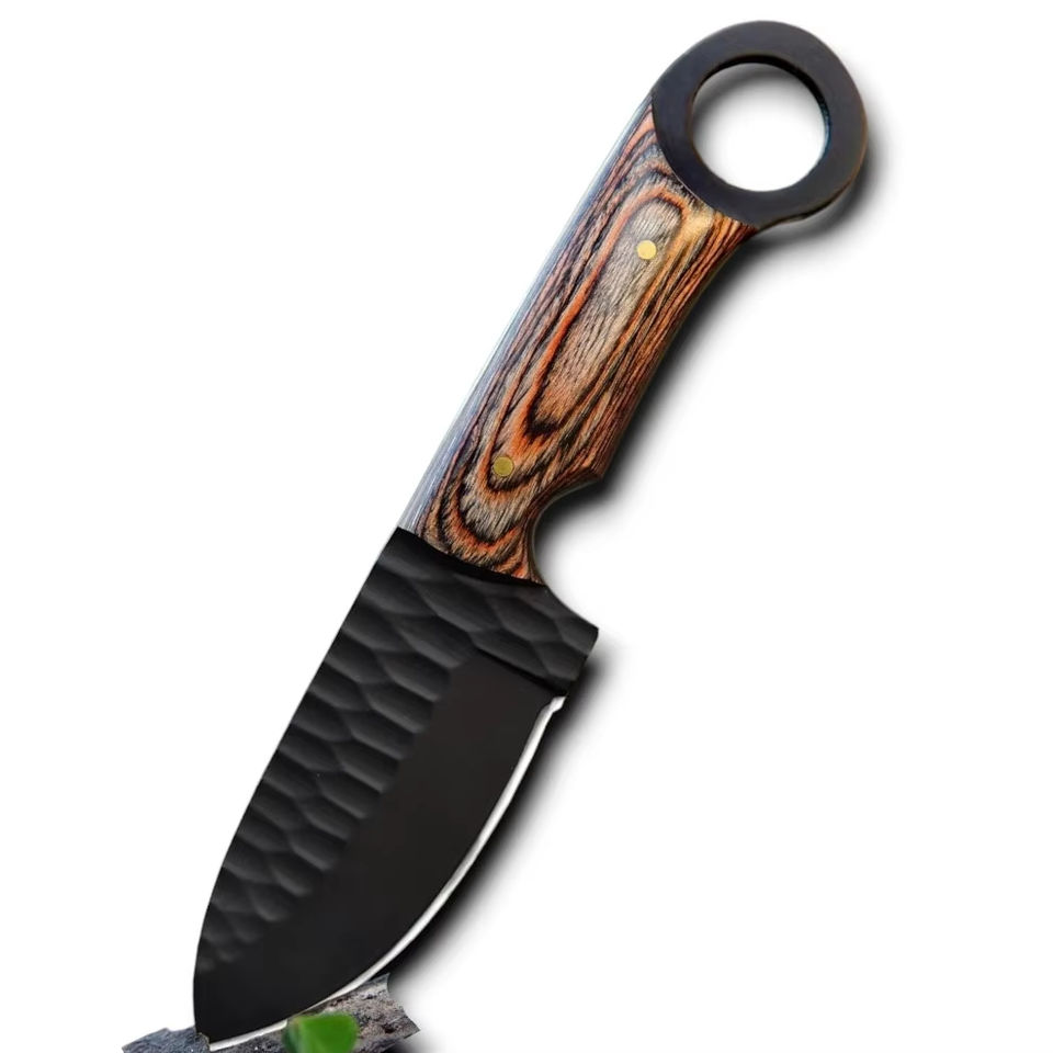 มีดทำมือจากเหล็ก 1095 แบบเต็มด้ามคมกริบ มีรูสำหรับนิ้วมือ เหมาะสำหรับการล่าสัตว์ ตั้งแคมป์ พกพา ใช้ในชีวิตประจำวัน ด้ามไม้ปักก้า คุณภาพระดับอุตสาหกรรม รับผลิตแบบ OEM/ODM
