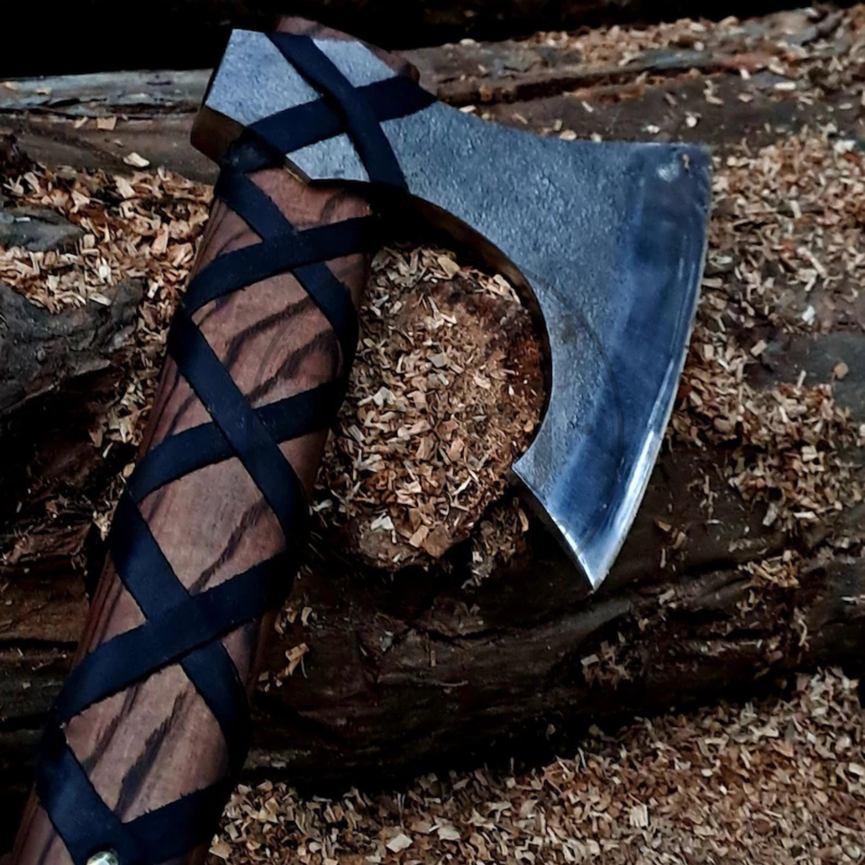 มีดตัดพิซซ่าเหล็กกล้าคาร์บอนตีขึ้นรูปด้วยมือ ขนาด 16 นิ้ว ขวานบุชคราฟท์ ด้ามไม้เนื้อแข็ง ปลอกหนัง คุณภาพระดับอุตสาหกรรม รับประกัน 3 ปี