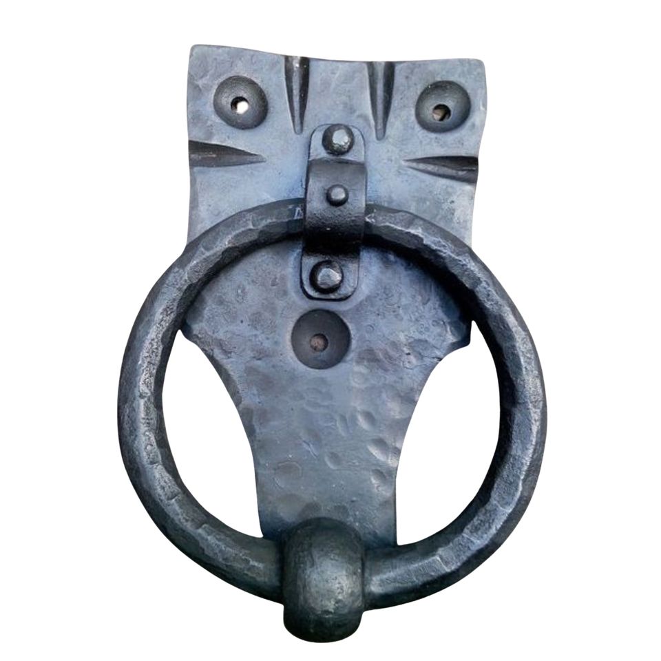 ที่เคาะประตูแบบตีขึ้นรูปด้วยมือ พร้อมเคลือบโลหะเหล็ก สำหรับติดผนัง ใช้กับประตูและประตูรั้ว สำหรับประตูห้องนอน และประตูรั้วภายนอก