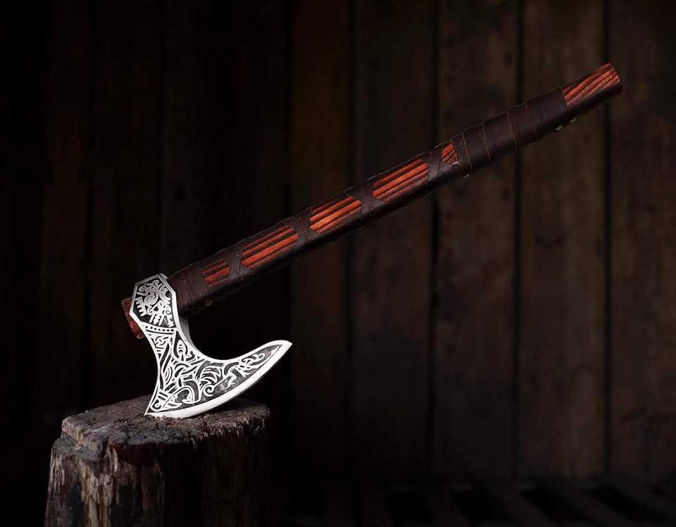 หัวขวานไวกิ้งแบบตีขึ้นรูปด้วยมือ เกรดอุตสาหกรรม/DIY เหล็กกล้าคาร์บอน ด้ามไม้ธรรมชาติ ด้านหลังแบน HRC 58-60 สำหรับใช้งานกลางแจ้ง ตัดต้นไม้