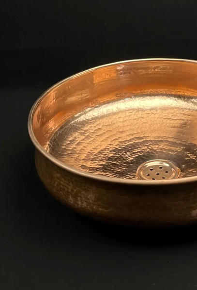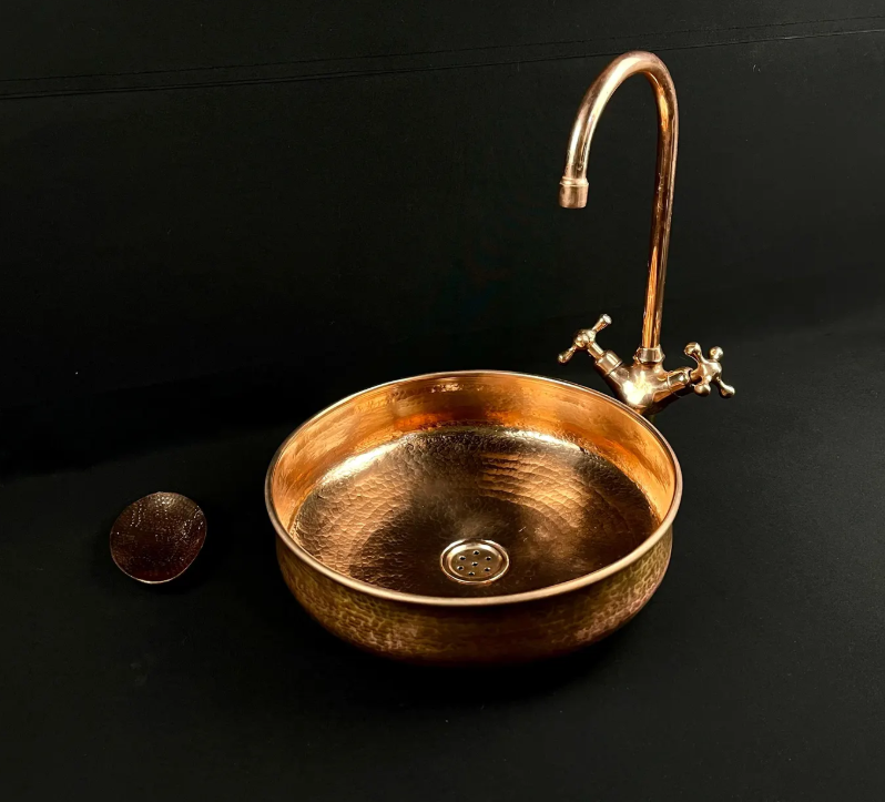 อ่างล้างหน้าทรงกลมทำจากทองแดงตีมือ สำหรับห้องน้ำ สไตล์รีสอร์ท บ้านพักตากอากาศ โรงแรมสปา บูติก